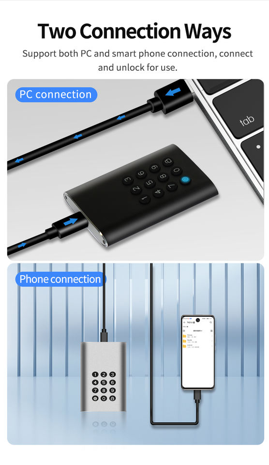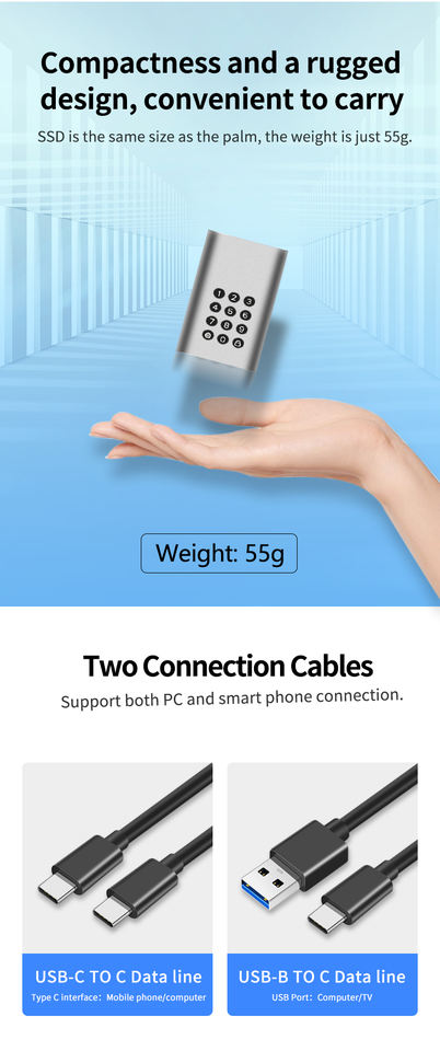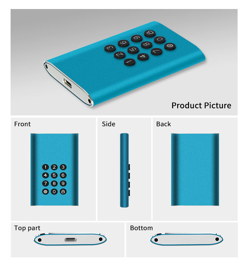 SSD a stato solido AES256 crittografia USB3.0 se si inserisce la password sbagliata dieci volte di seguito, il file si autodistruggerà