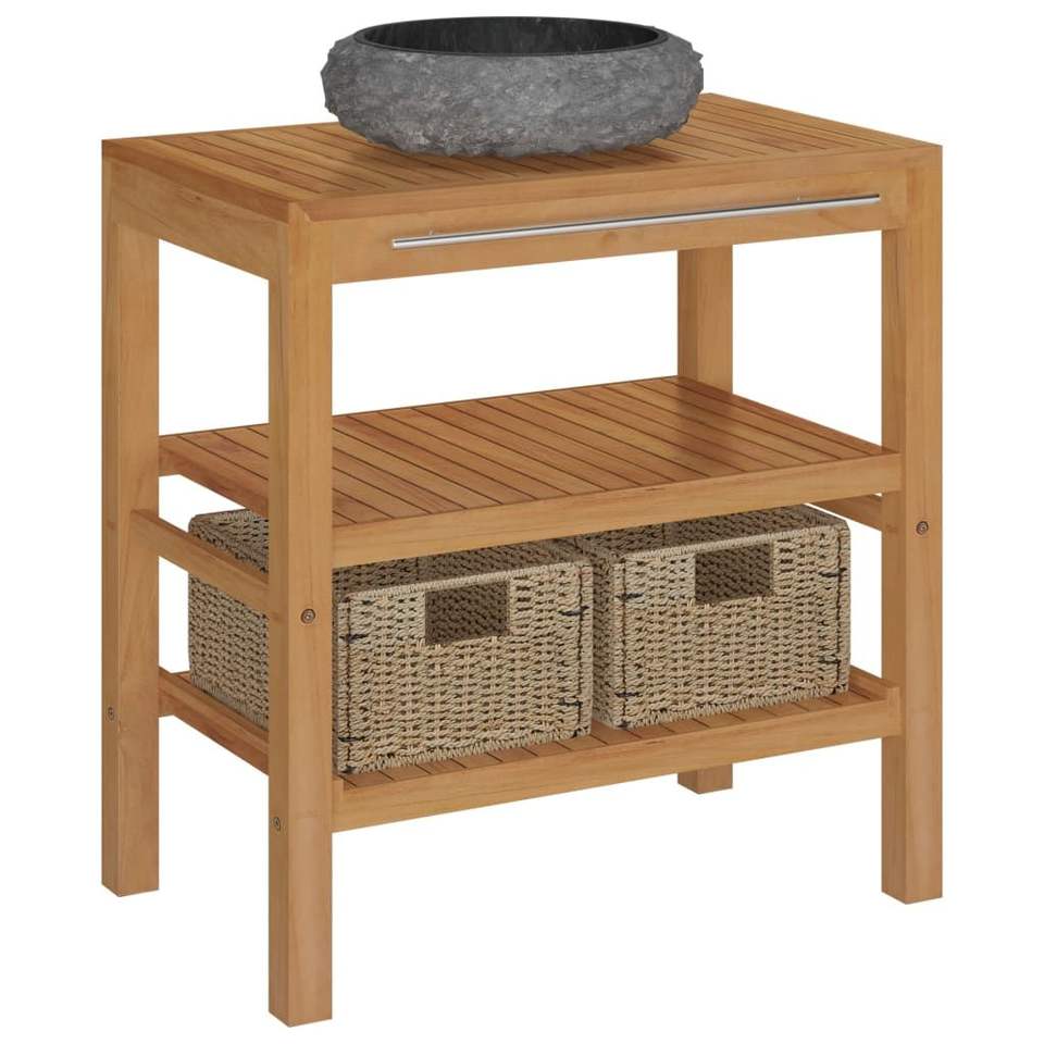 Mobile mobile da bagno in Teak solido con lavabo in marmo nero di qualità Premium