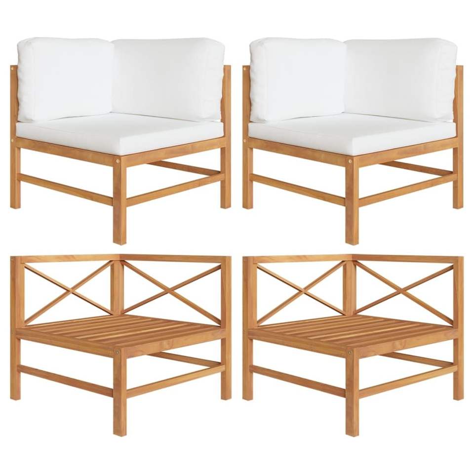 Divani angolari in legno massello di teak con cuscini color crema, set di mobili da giardino in 2 pezzi