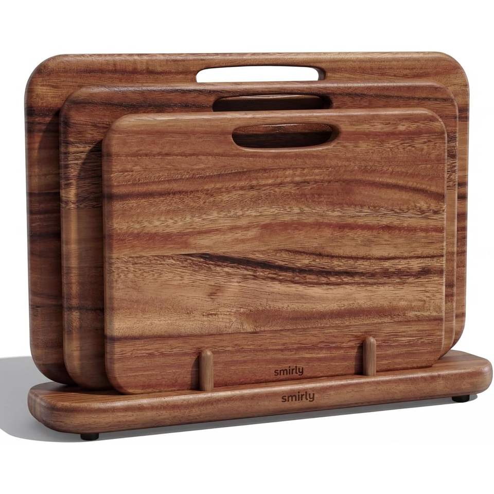 Solid Walnut Wood Cutting Board Set Double Sided Kitchen Tool Heavy Duty Chopping Blocks with Comfort Handle