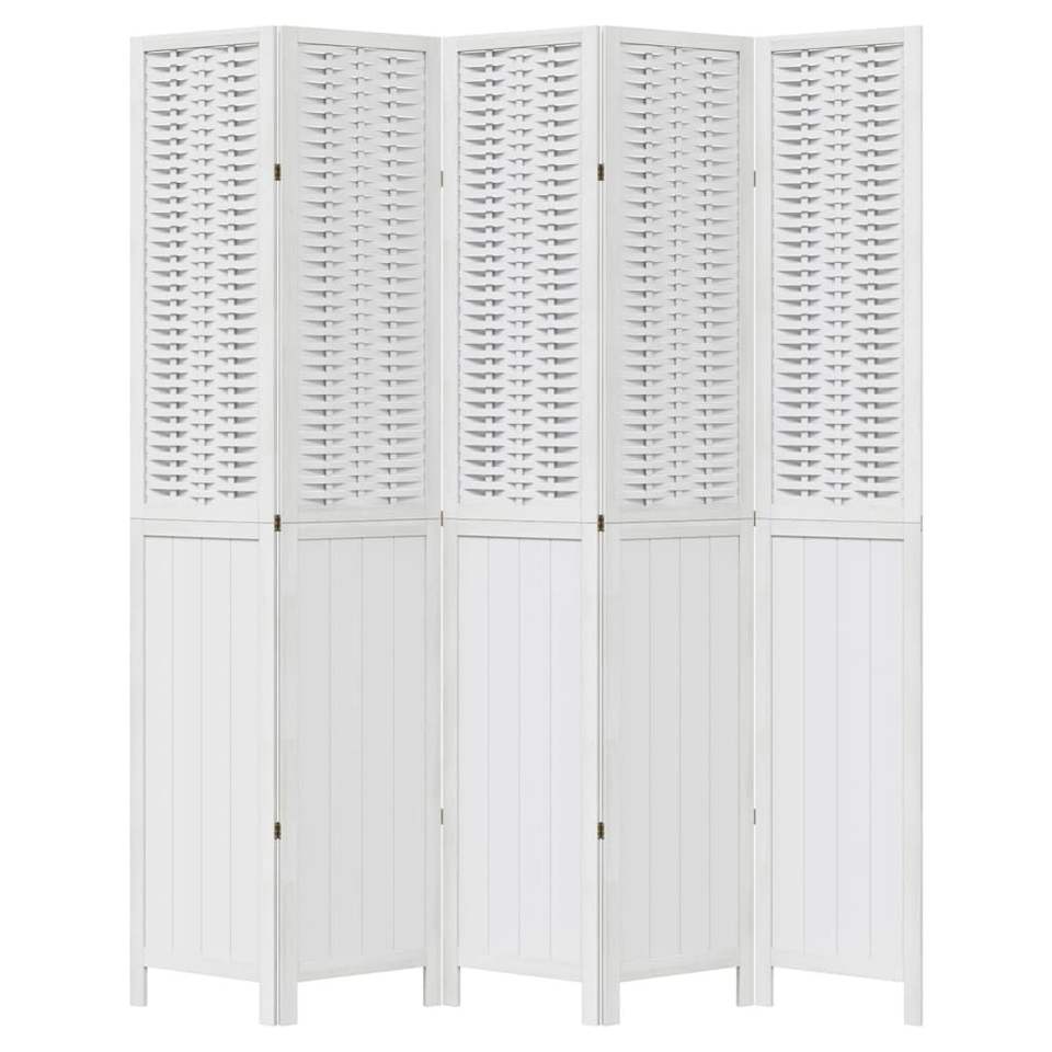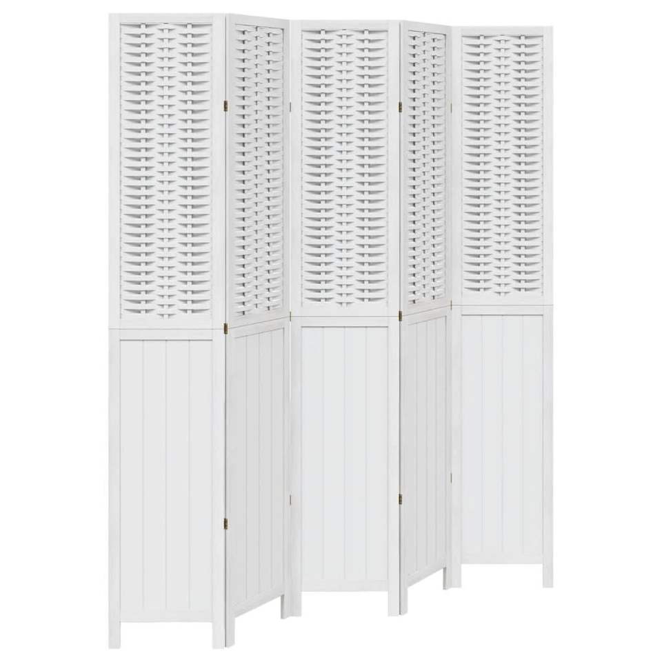 Solid White Wood Paulownia 5-Panel Room Divider Screen