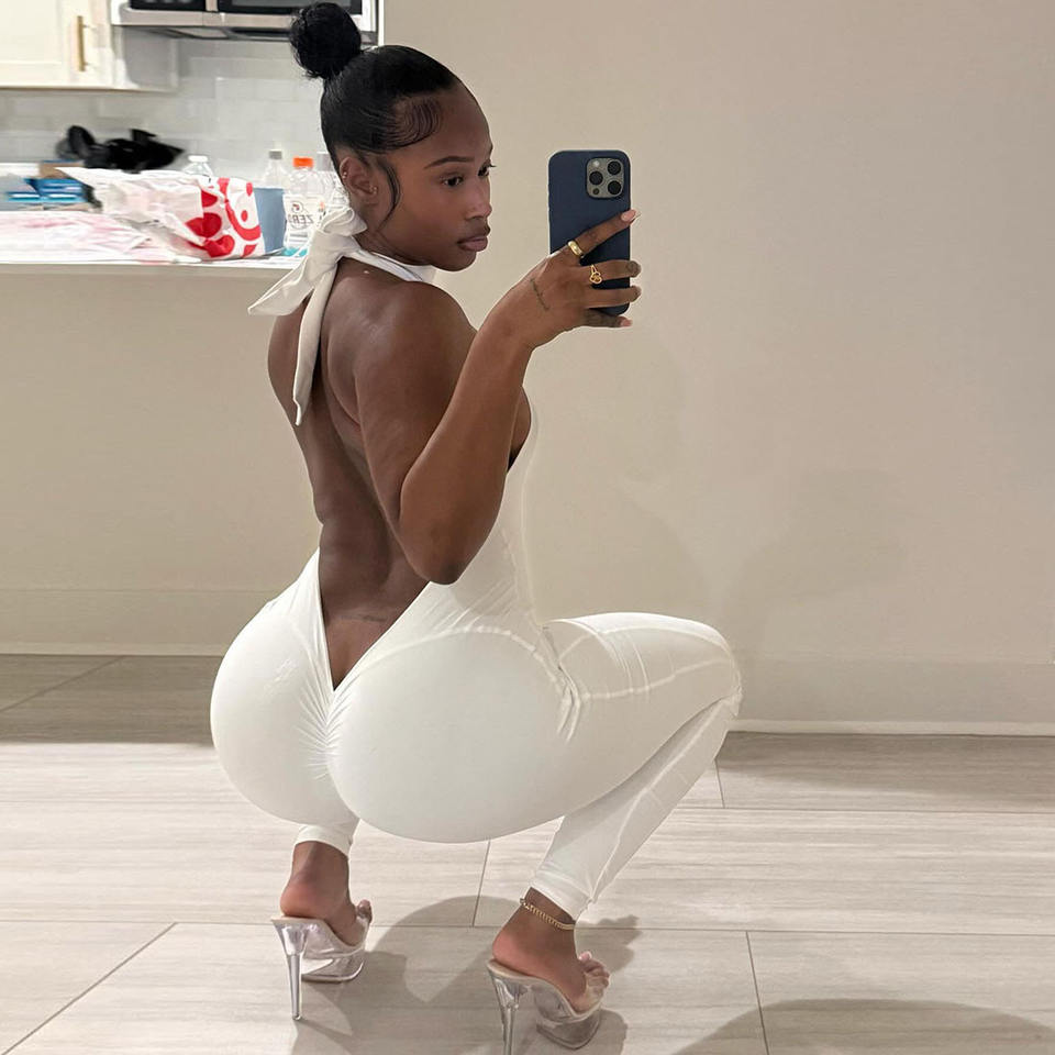 Solid Women Lift Buttocks Jumpsuits Sexy Soild Bandage Backless Halter Slim Yoga Overalls