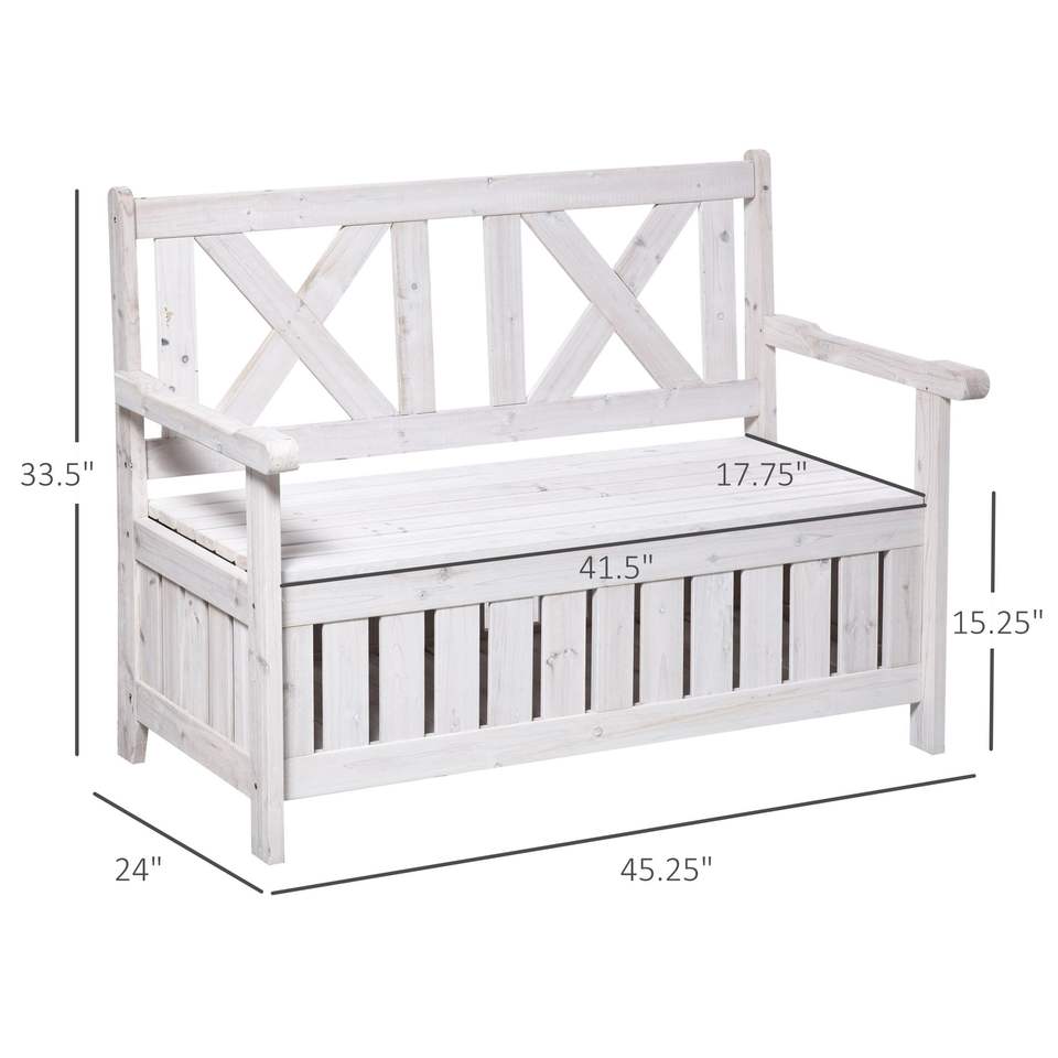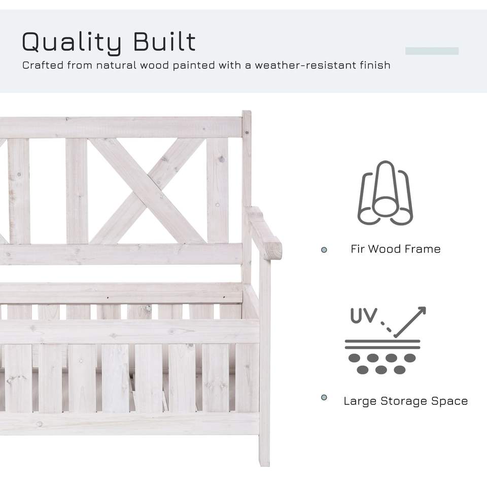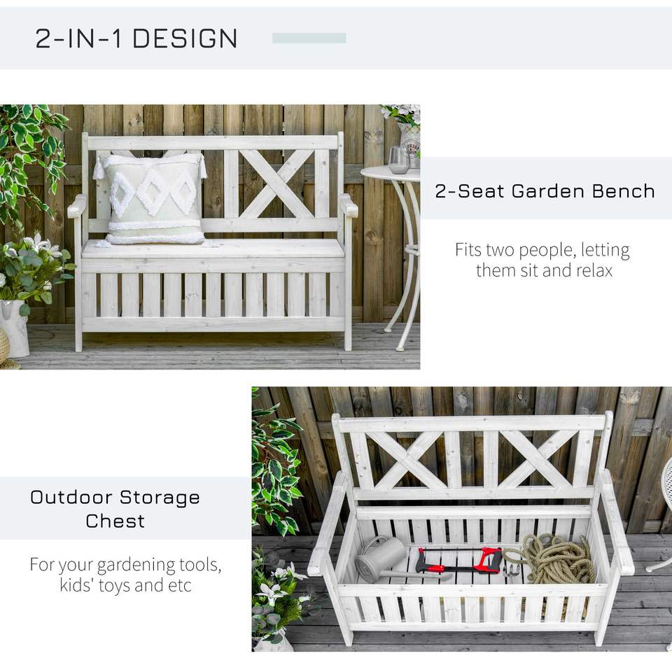 Panca da Giardino in Legno Massello a 2 Posti con Contenitore, Design Elegante, Pannelli a Persiana, Bianca, per Esterni