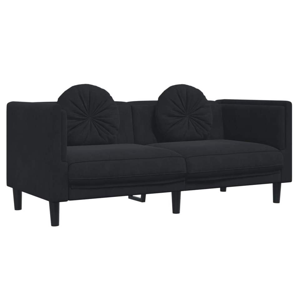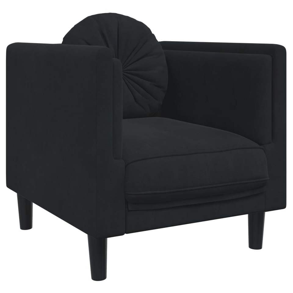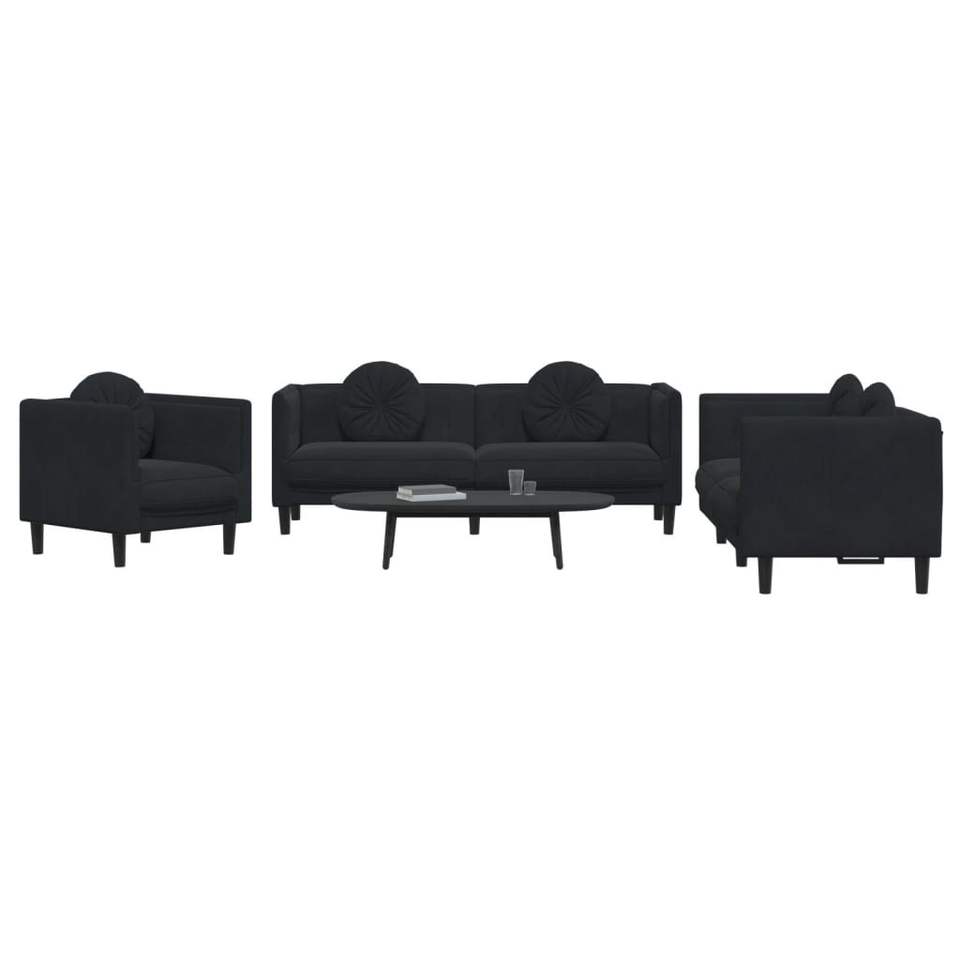 Set di Divani in Legno Massello a 3 Pezzi con Rivestimento in Velluto Nero per Soggiorno