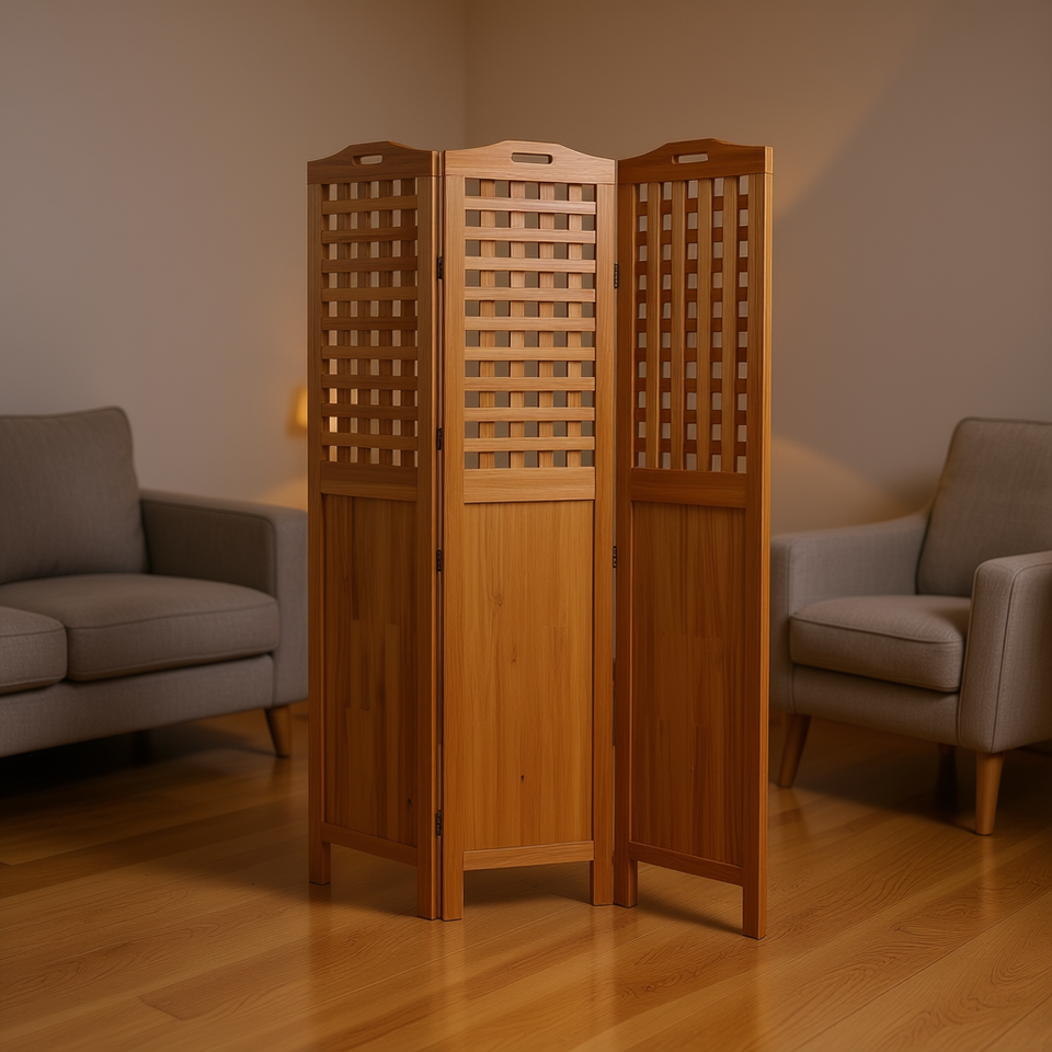 Divisorio per Stanza in Legno Massello di Acacia a 3 Pannelli 47.8x0.8x70.9 Pollici, Paravento Pieghevole Design Rustico