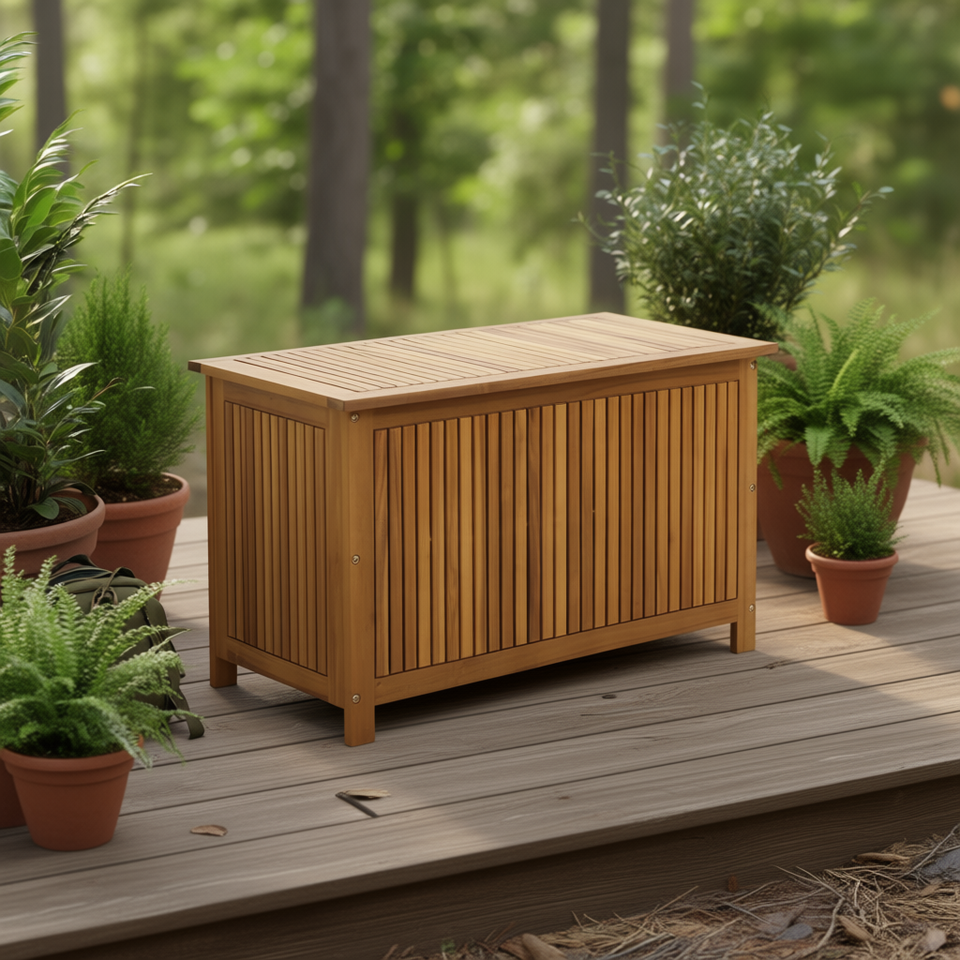 Solid Wood Acacia Patio Storage Box 35.4x19.7x22.8 In Durable Outdoor Furniture Accessory