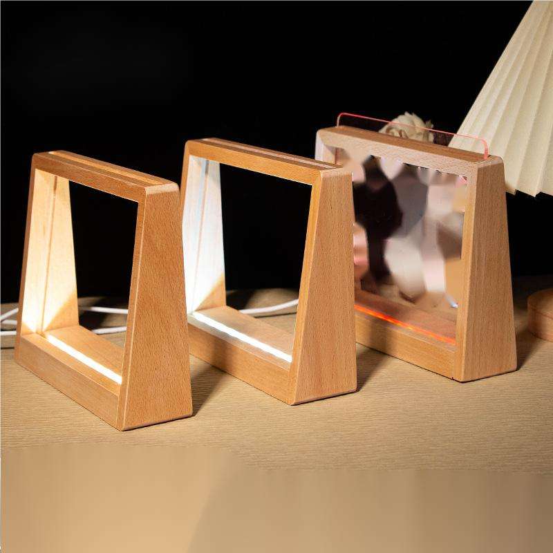 Cornice per foto in legno massello di faggio a LED foglia intaglio 3D luce notturna luminosa decorazione creativa fai da te