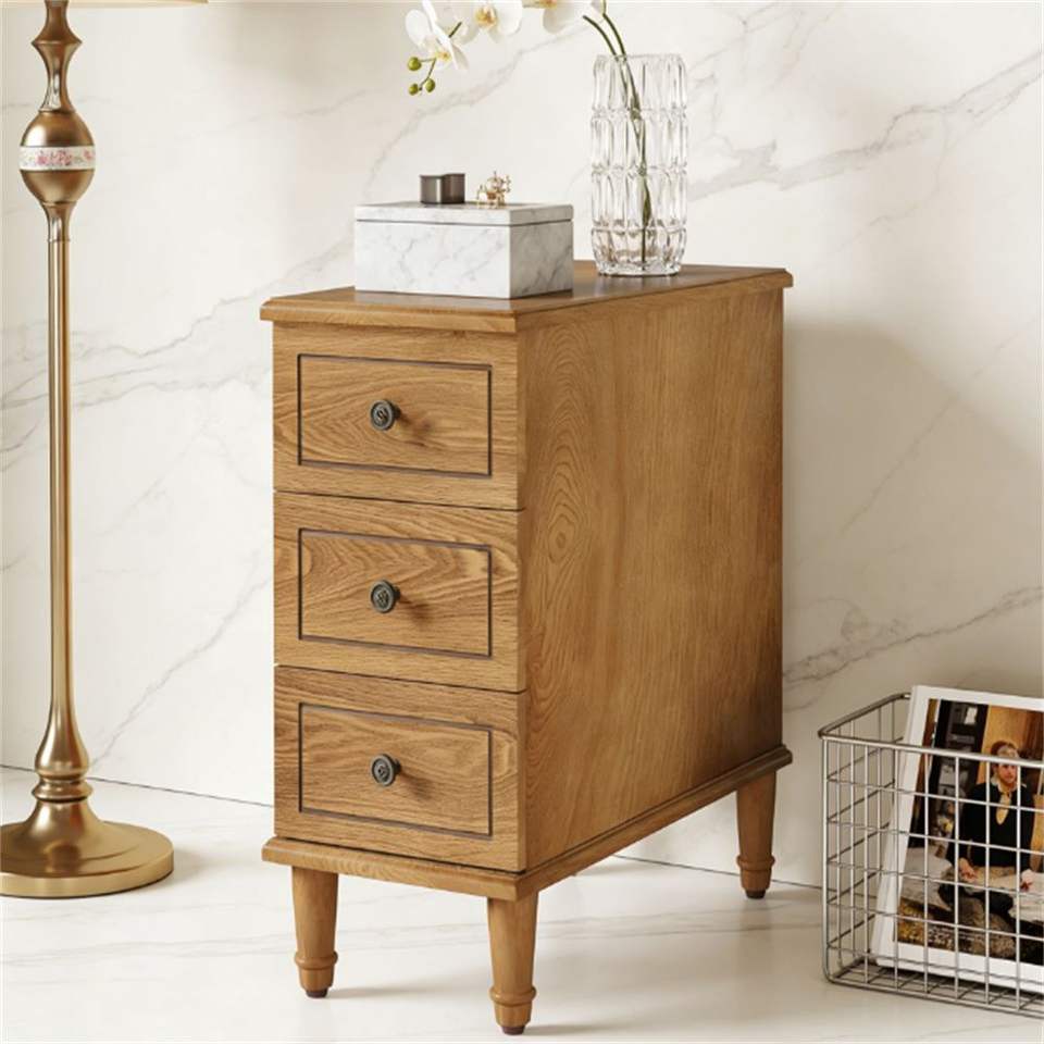 Comodino in Legno Massello con Cassetti, Utilizzabile come Tavolino da Divano o Tavolino Laterale