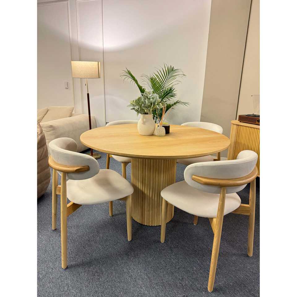 Solid Wood Dining Set Extendable Table & 6 Cushion Chairs Classic & Modern Design for Home Kitchen Living Room Restaurant Use