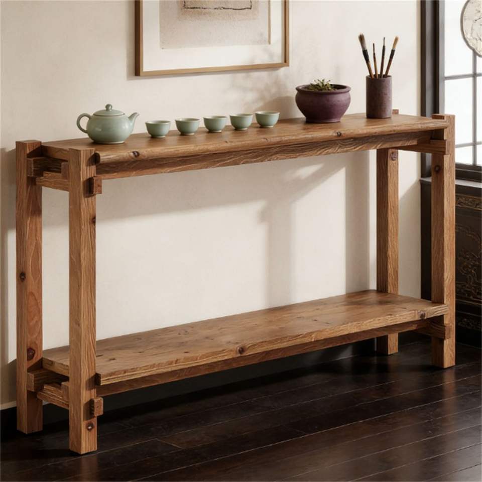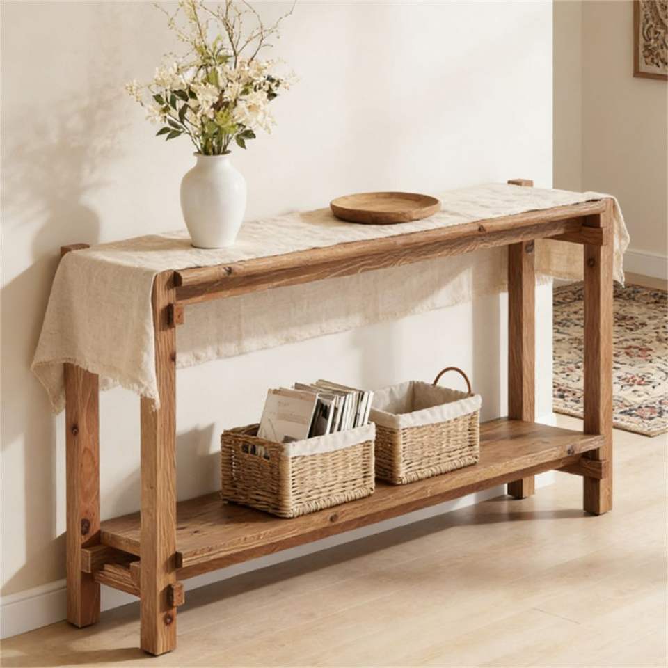 Consolle in Legno Massello Stile Rustico con Vano Portaoggetti, Facile da Installare, Tavolo da Ingresso o Divano