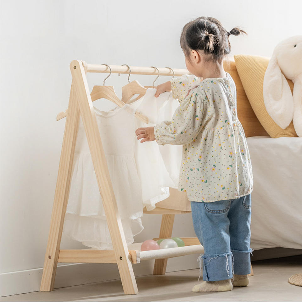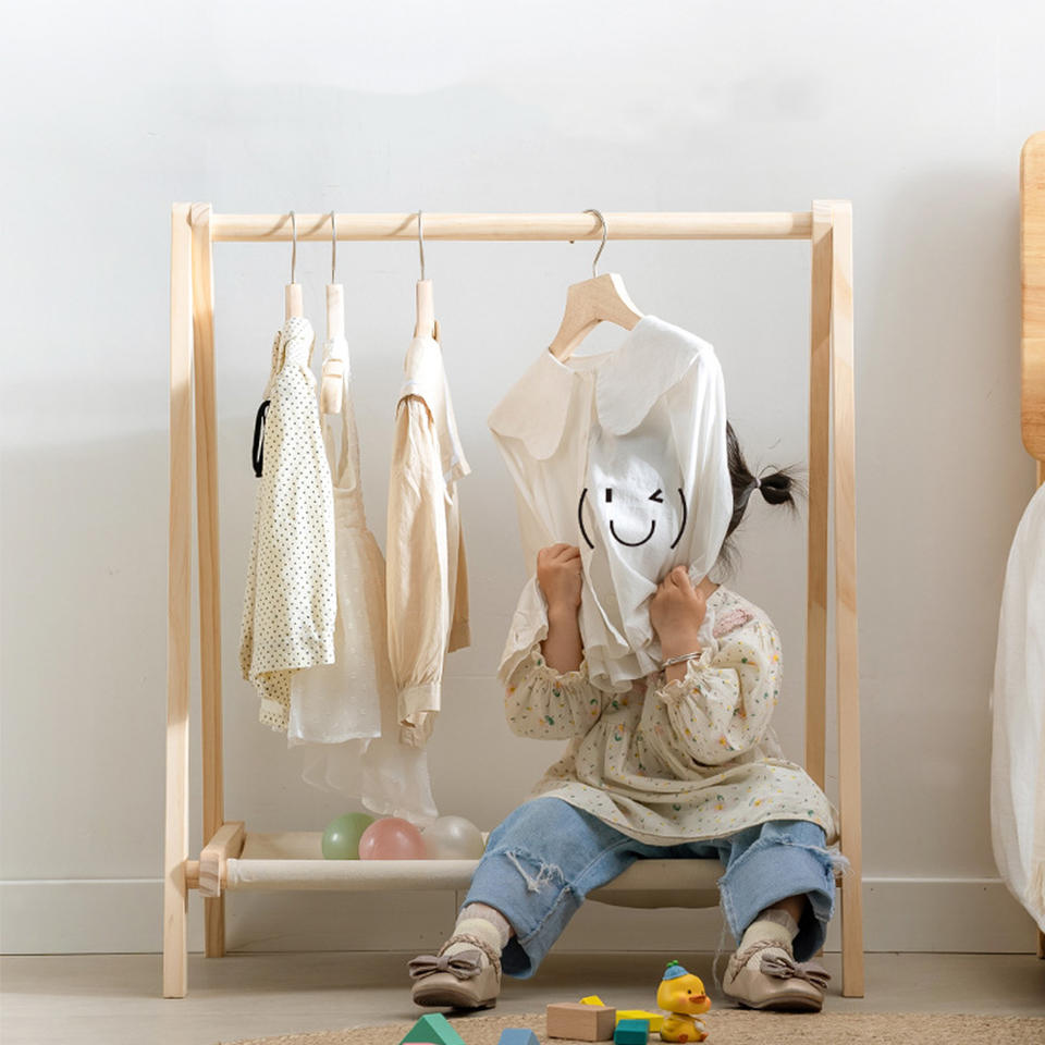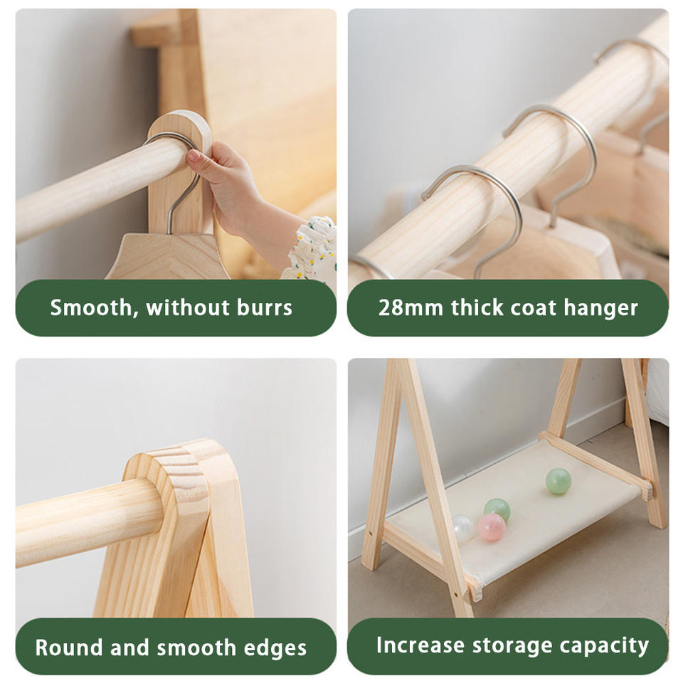 Solid Wood Floor-Standing Coat Rack Convenient Folding Design Small Bay Window Clothes Drying Rack for Storage Holders Racks