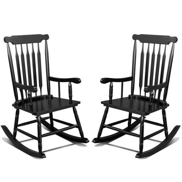 Solid Wood Outdoor Patio Rocking Chair Black Indoor Wooden Frame Rocker for Garden Backyard Balcony