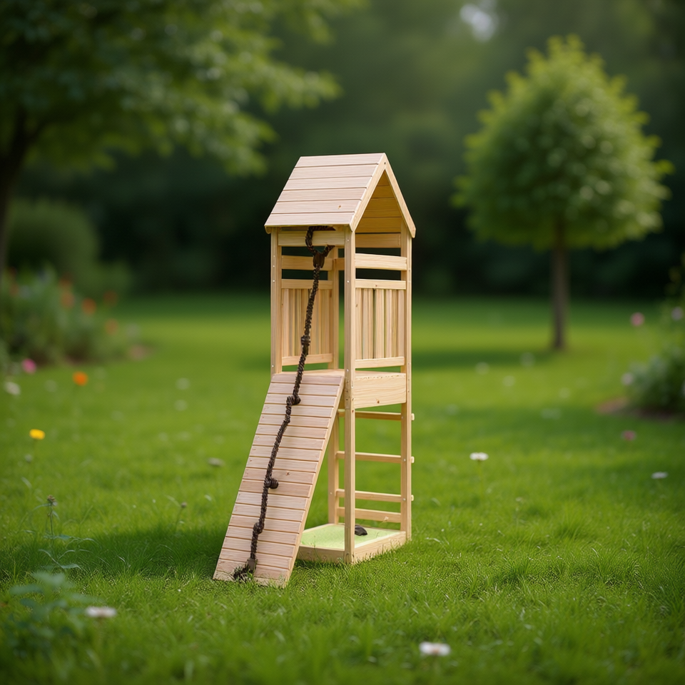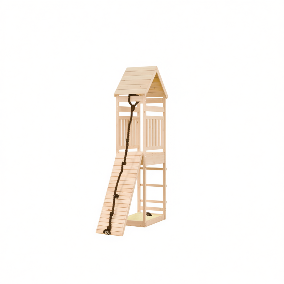 Solid Wood Pine Playhouse With Climbing Wall For Backyard Outdoor Use 3 To 8 Year Old Kids