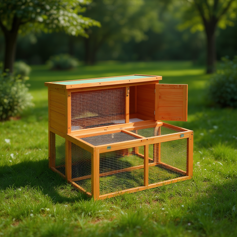 Casetta per Conigli in Legno Massello di Pino 40.2x35.4x33.3 Pollici Marrone, Cuccia da Esterno Resistente di Medie Dimensioni
