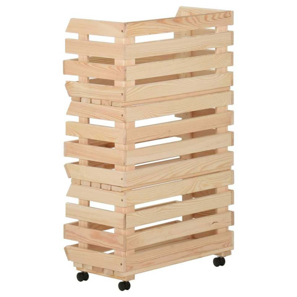 Carrello da Cucina Portatile in Legno Massello di Pino con 4 Ripiani, 14.6x11.8x31.5 Pollici