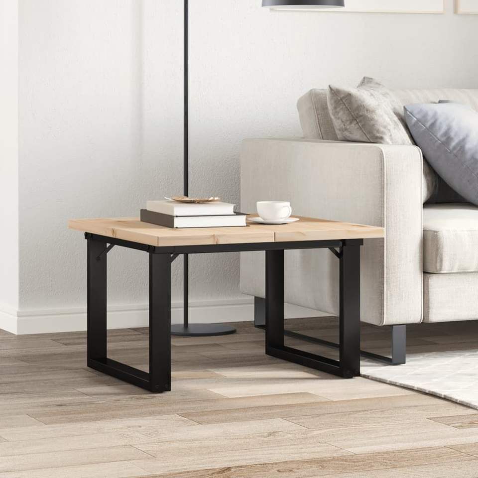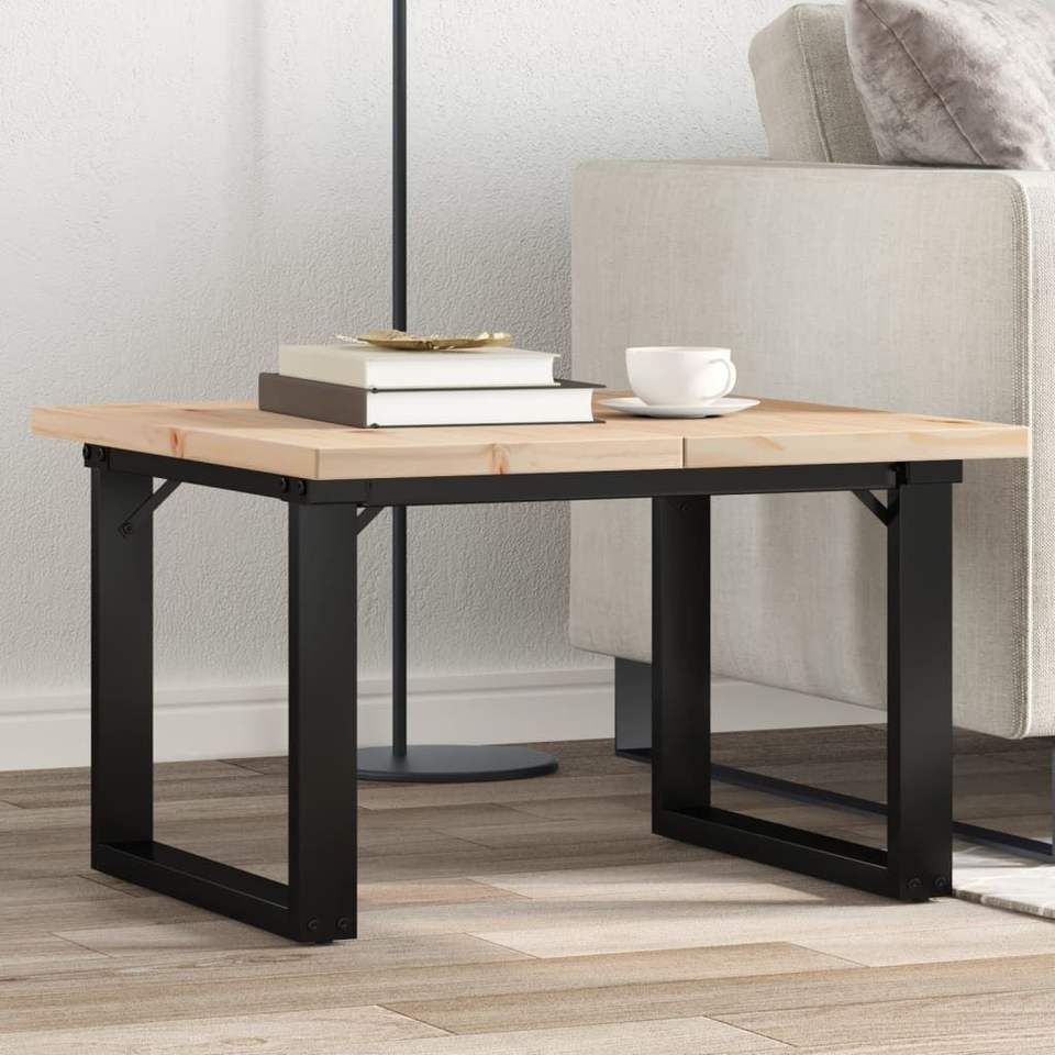 Tavolino da caffè con struttura a O in legno massello di pino e acciaio 23,6"x23,6"x15,9"