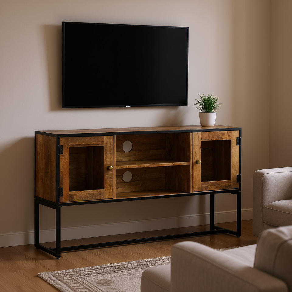 Mobile TV in Legno Massello Recuperato 47.2x11.8x29.5 Pollici Design Elegante per l'Intrattenimento Domestico