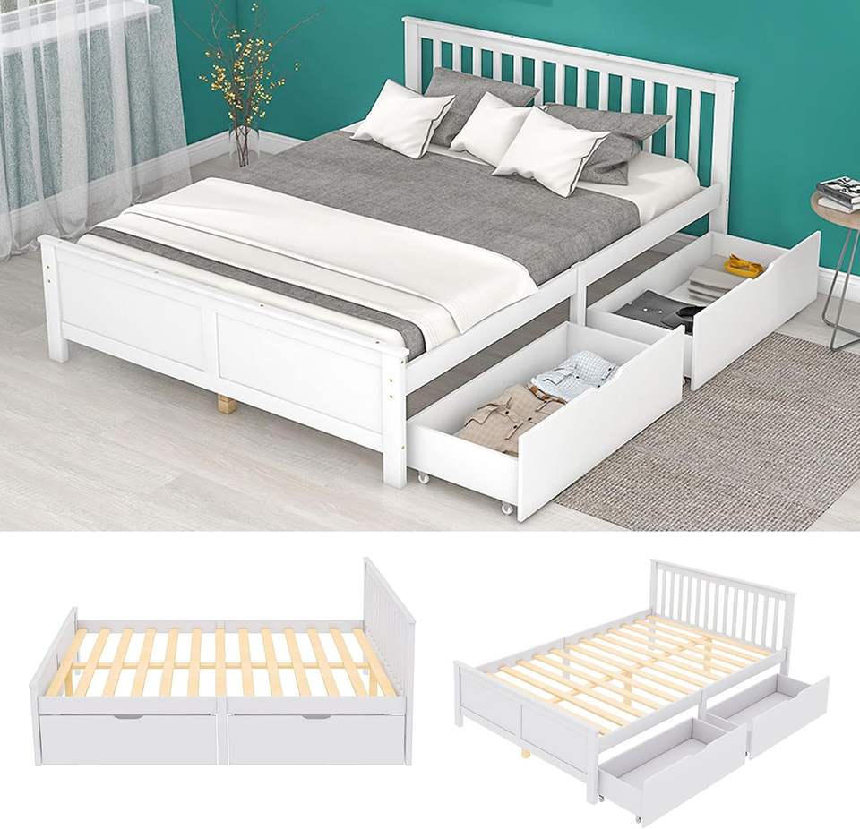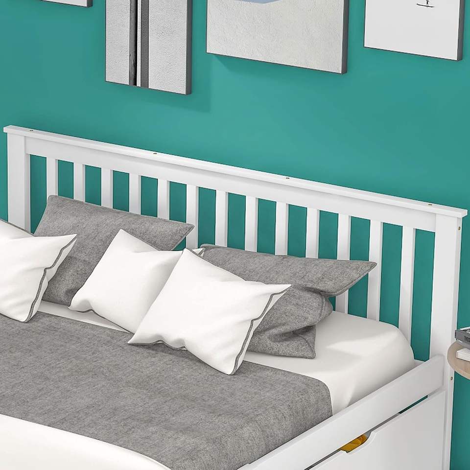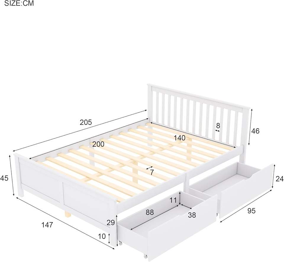 Struttura del letto singolo in legno massello 2 cassetti a doghe Base per gli ospiti della gioventù letto per adulti bambini in legno testiera del letto di stoccaggio 140X200 cm