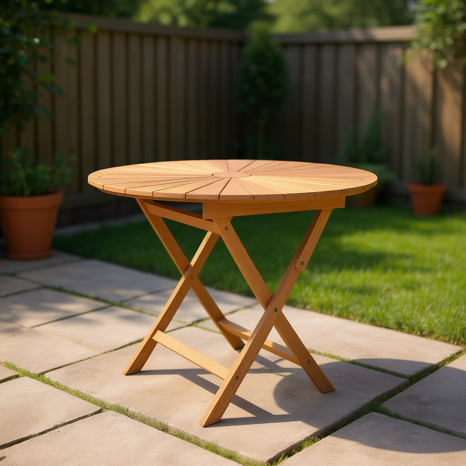 Tavolo Pieghevole da Esterno in Legno Massello di Teak, Diametro 33,5 Pollici