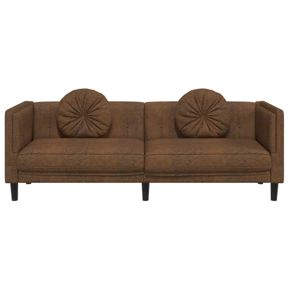 Solid Wood and Plywood Sofa in Brown 100% Polyester Faux Suede Leather Living Room Furniture