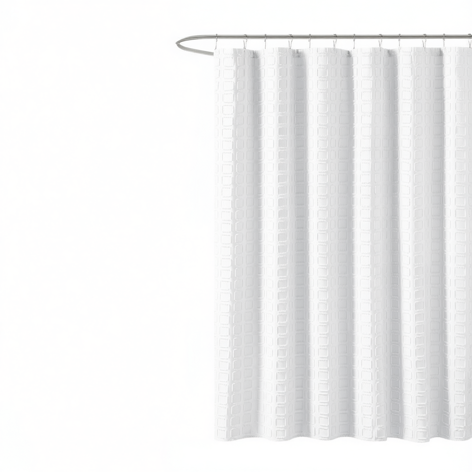 Solid Woven Clipped Shower Curtain Minimalist Fabric Design For Bathroom Use