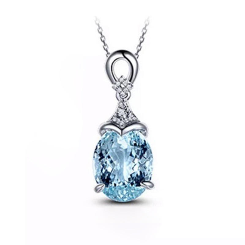 Ciondolo Solitario in Argento 925 con Topazio Blu Mare, Montatura a Goccia, Gioiello Classico da Donna per Uso Quotidiano