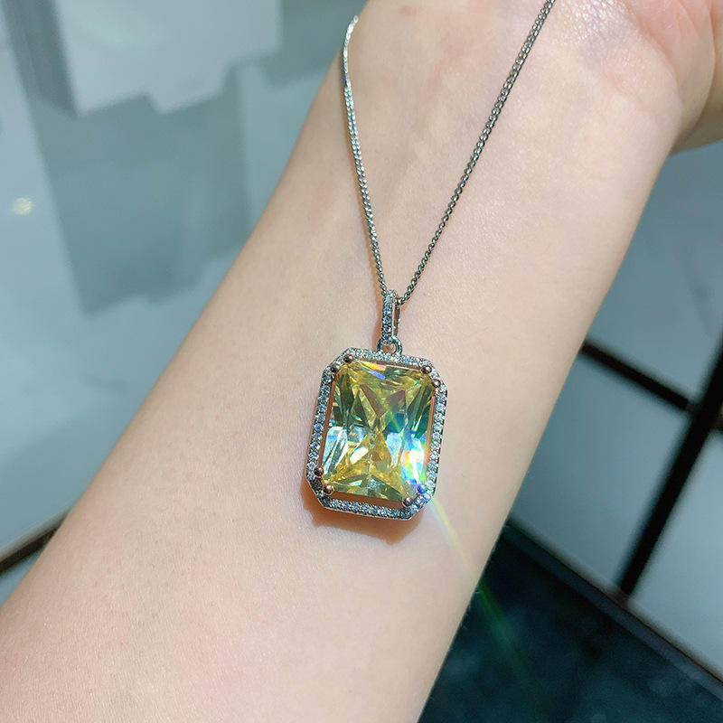 Ciondolo Solitario con Cristallo Taglio Smeraldo, Strass in Argento 925 Placcato Rodio, Design Geometrico di Lusso per Uso Quotidiano Femminile