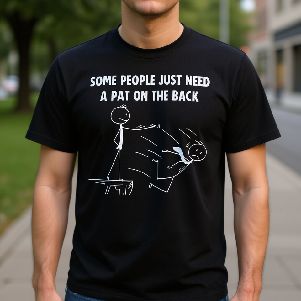 Alcuni hanno bisogno di una pacca sulle spalle. T-shirt sardonica nera per adulti, unisex, a maniche corte, girocollo