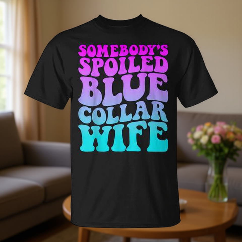 Maglietta da donna con scritta 'Somebody's Spoiled Blue Collar Wife', regalo originale per la Festa della Mamma