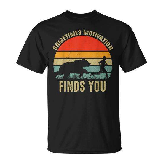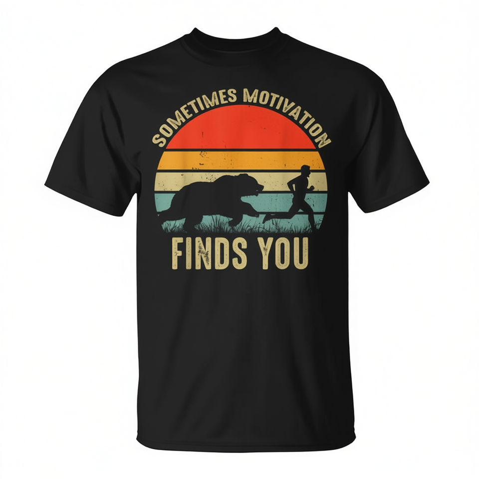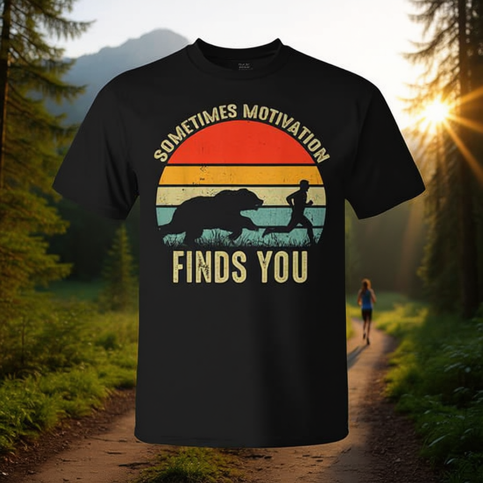 A volte la motivazione ti trova: maglietta promozionale con orso che corre