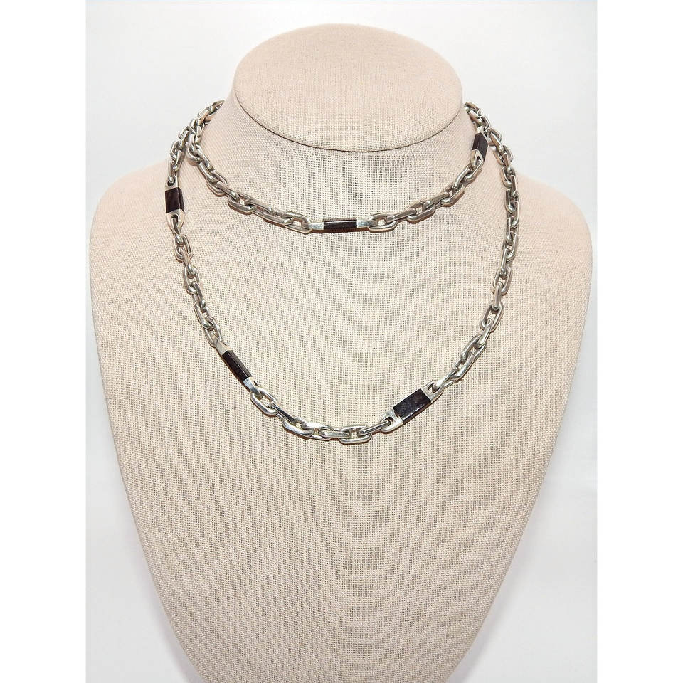 Sophisticated .925 Sterling Silver Link Necklace with Inlaid Ebony Accents Fashion Chains for Women