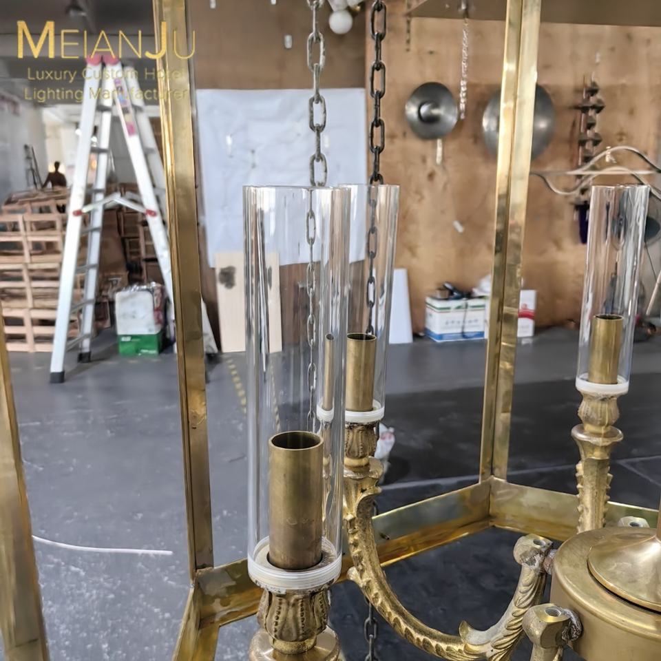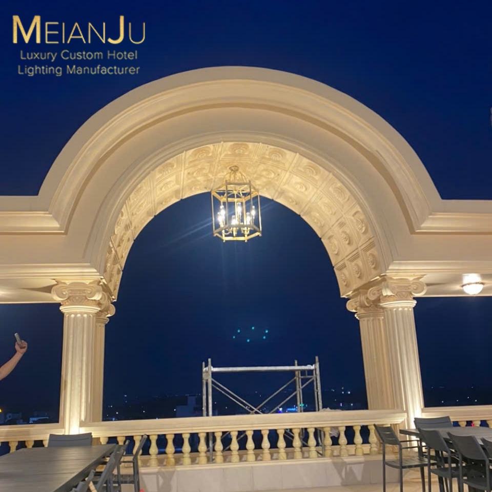 Sofisticato stile minimalista rustico americano esterno in lega di rame appeso soffitto lampadario per alberghi per Patio