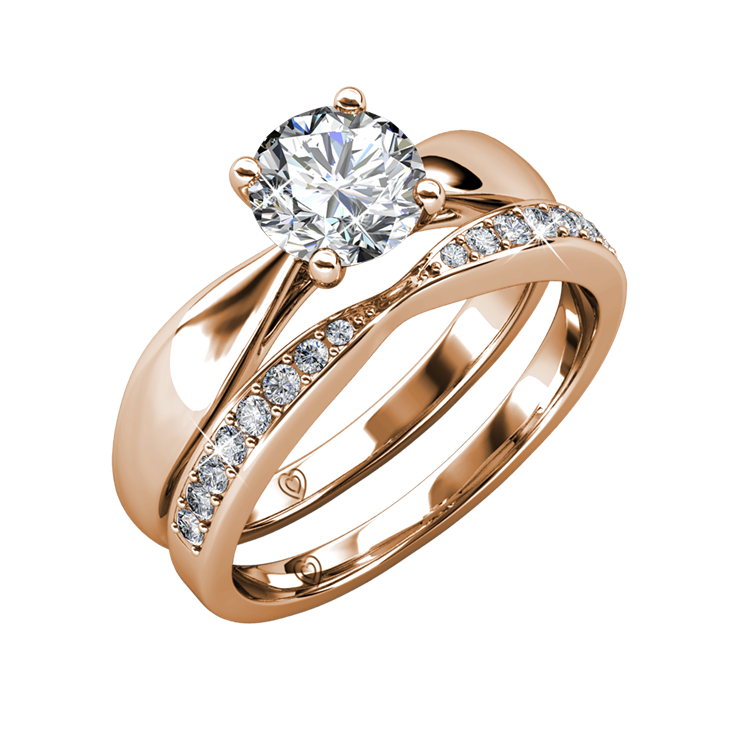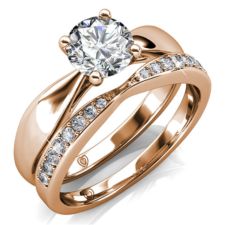 Sofisticato anello a doppio strato in oro rosa Design unico impreziosito da gemme Swarovski perfette per matrimoni e anniversari