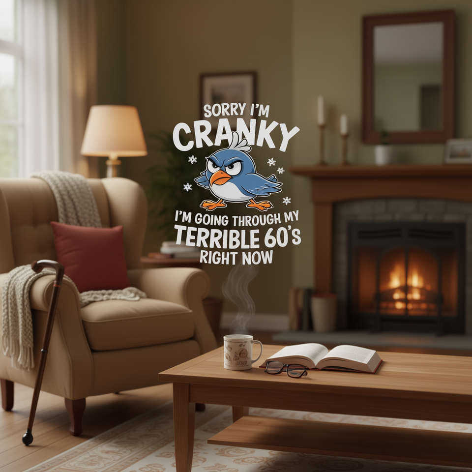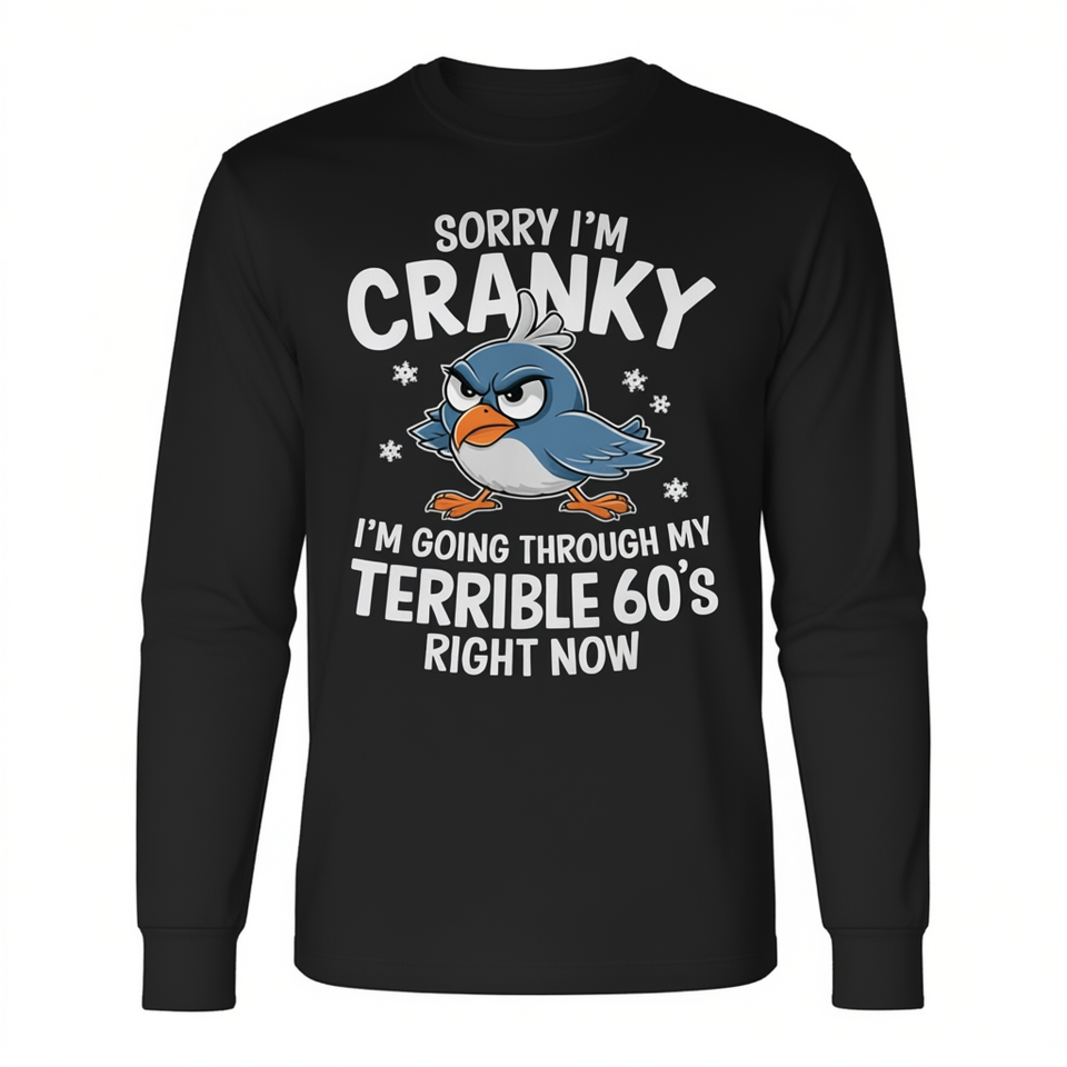 Scusa, sono irritable, sto passando la mia terribile età dei 60 anni. T-shirt a maniche lunghe.