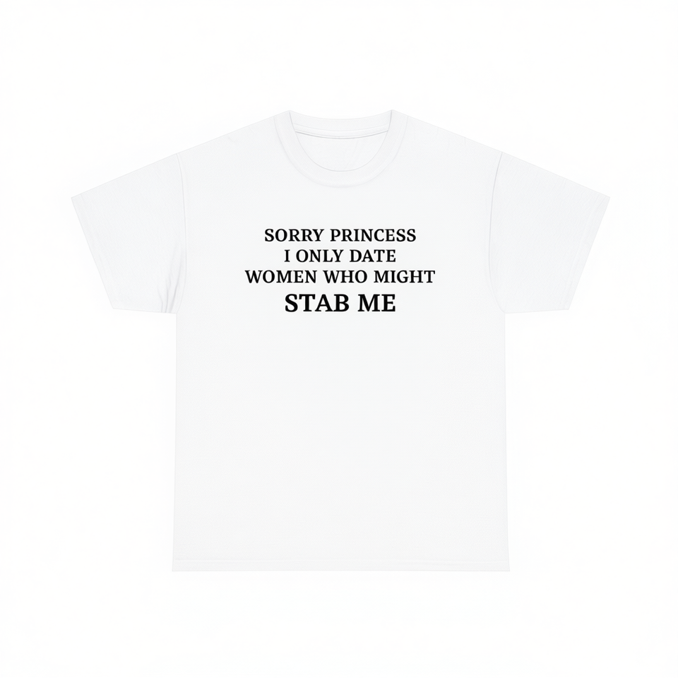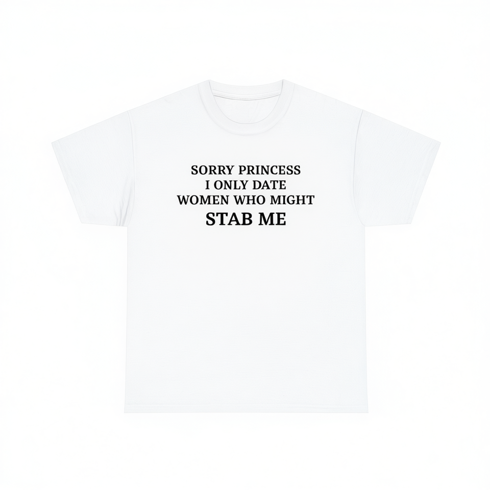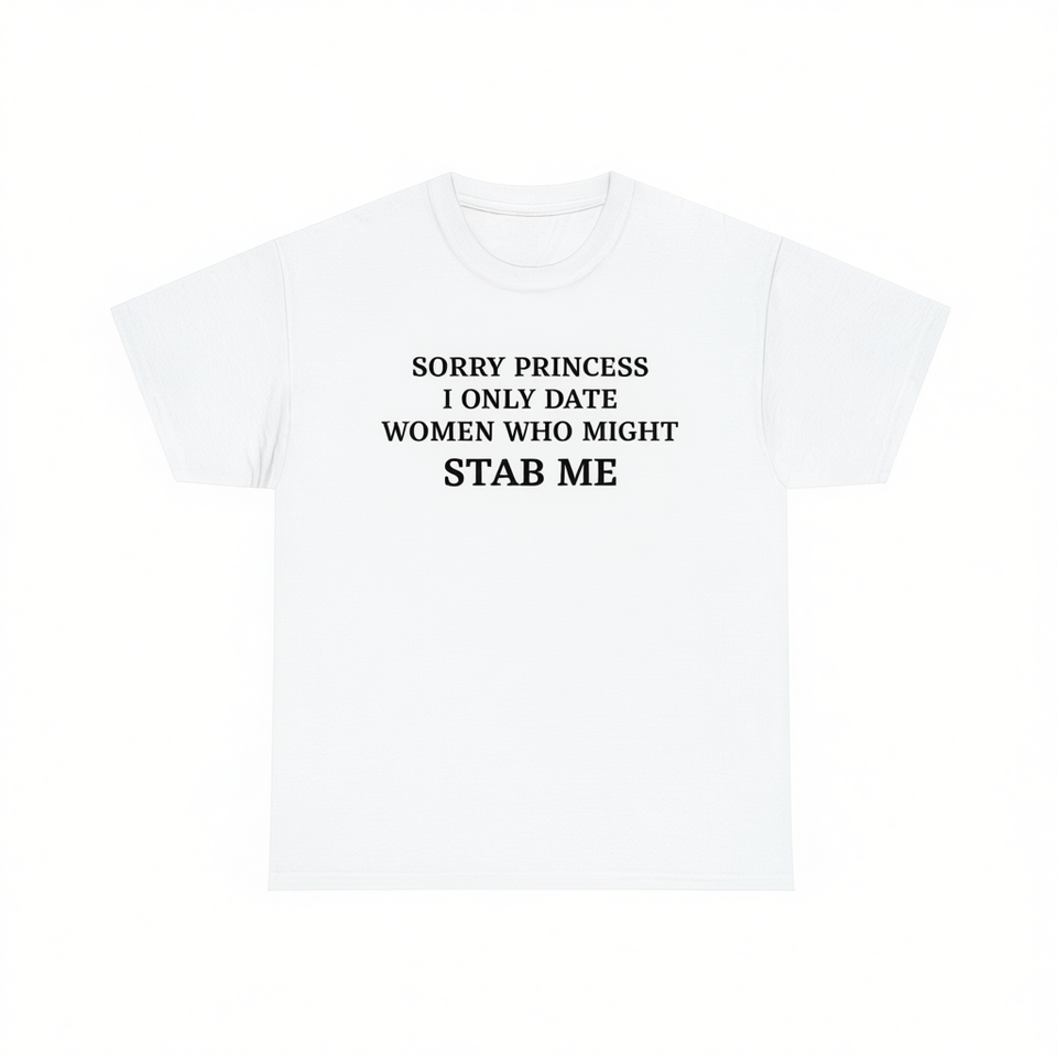 Scusa, principessa, ma non uscivo mai con donne che potrebbero colpire con un coltello - T-shirt unisex in cotone a girocollo a maniche corte, divertente maglietta meme per adulti