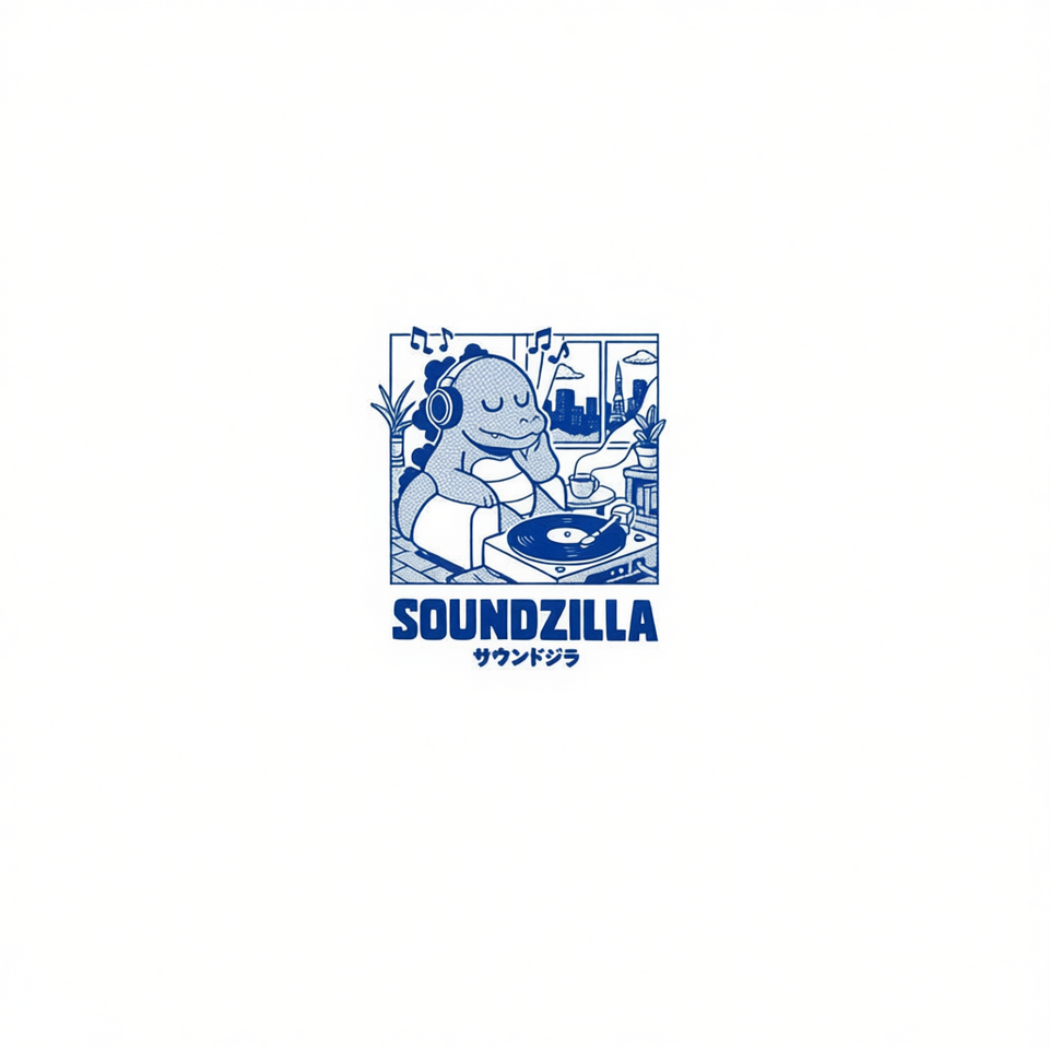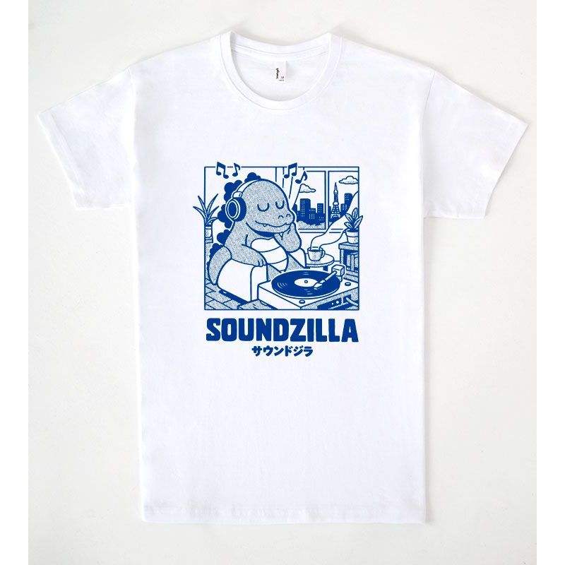 T-shirt Soundzilla bianca unisex con grafica musicale DJ