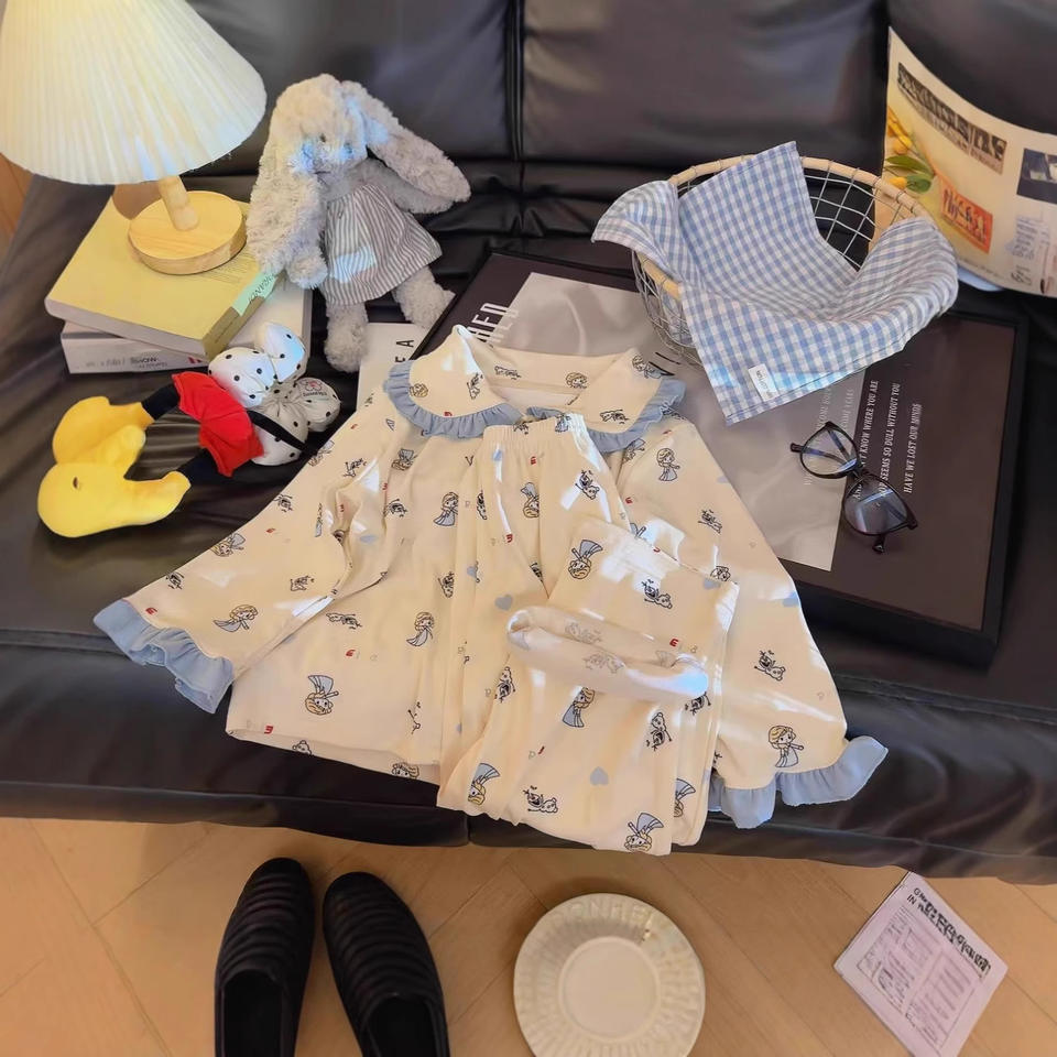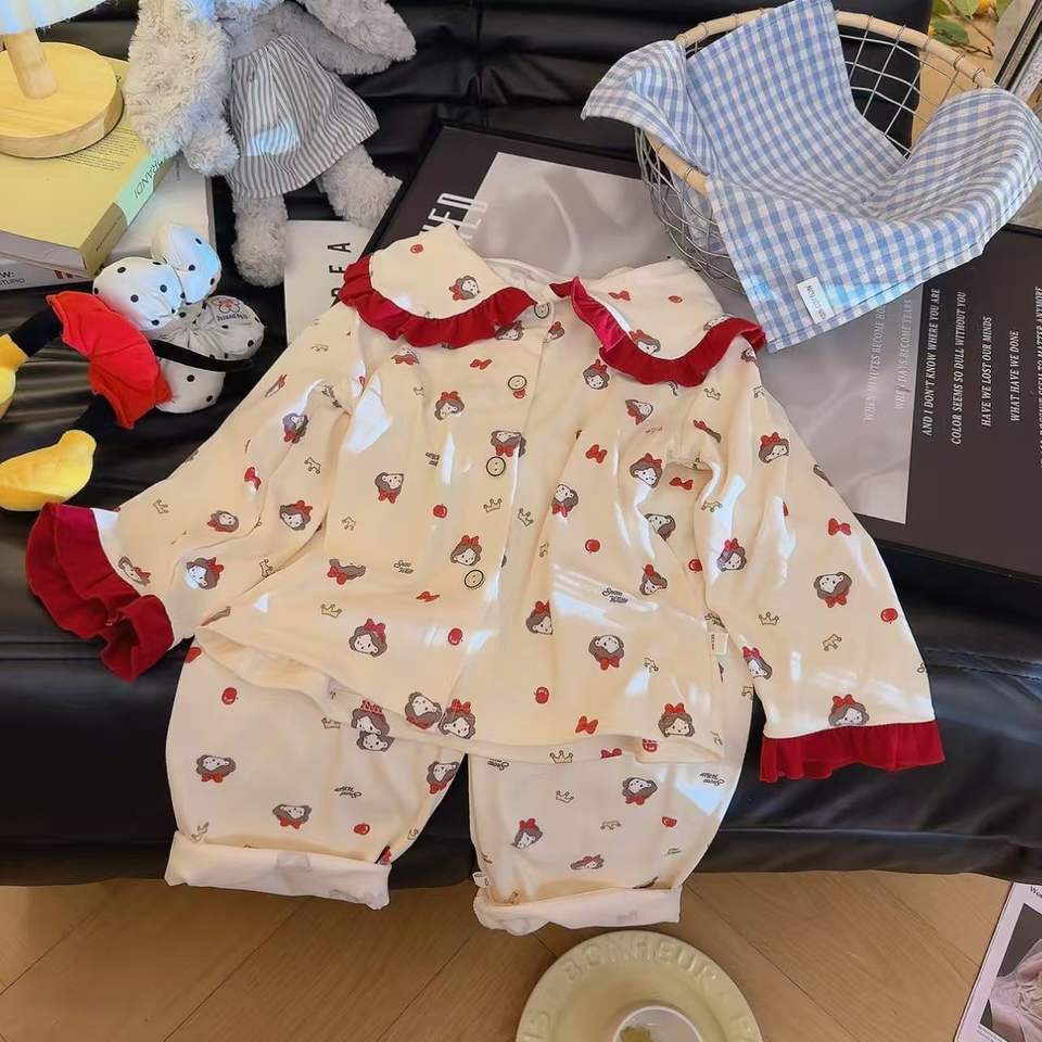 Pigiama da Ragazza in Pile Autunnale Confortevole con Colletto Rovesciato, Maniche Lunghe e Pantaloni Lunghi, Design Cartoon