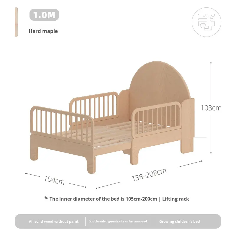 Fonte palazzo nordamericano legno di ciliegio in legno massello letto per bambini moderno estendibile letto singolo Splicing Guardrail letto