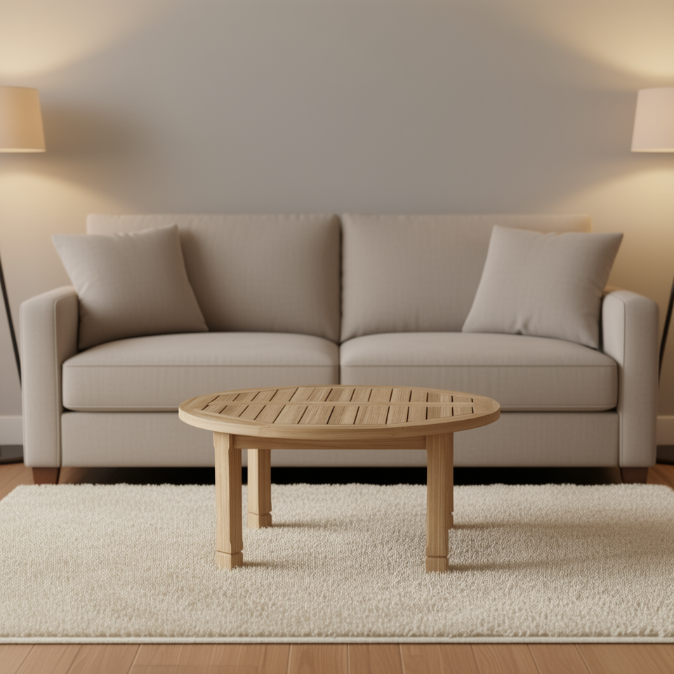 Tavolino da Caffè Rotondo Soutbay 35 Pollici in Legno, Arredamento Moderno per Soggiorno