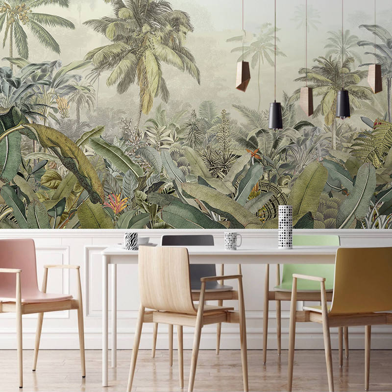 Carta da Parati Murale 3D con Disegni di Foresta Pluviale Tropicale del Sud-Est Asiatico per Decorazione d'Interni