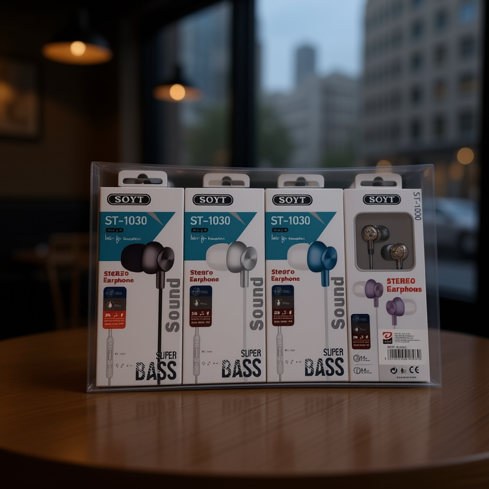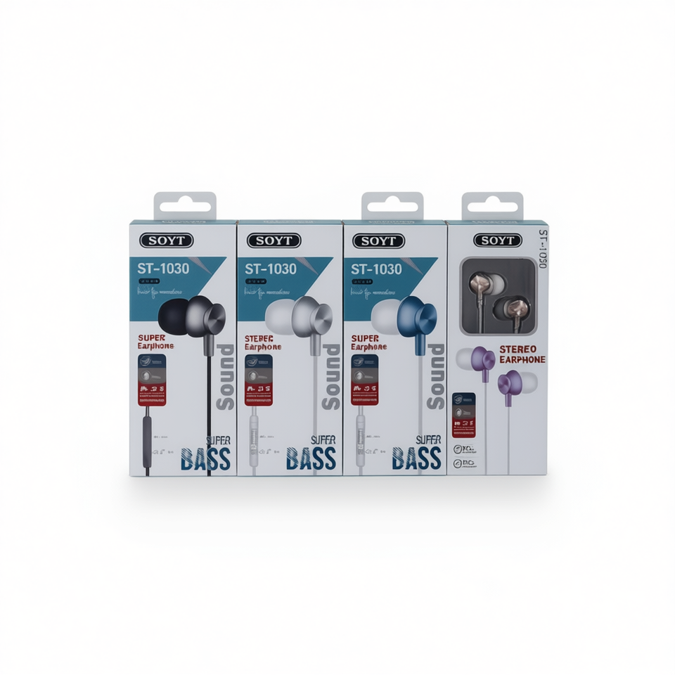 Auricolari stereo Soyt ST-1030 con microfono, cuffie in-ear super bass, confezione da 12 pezzi