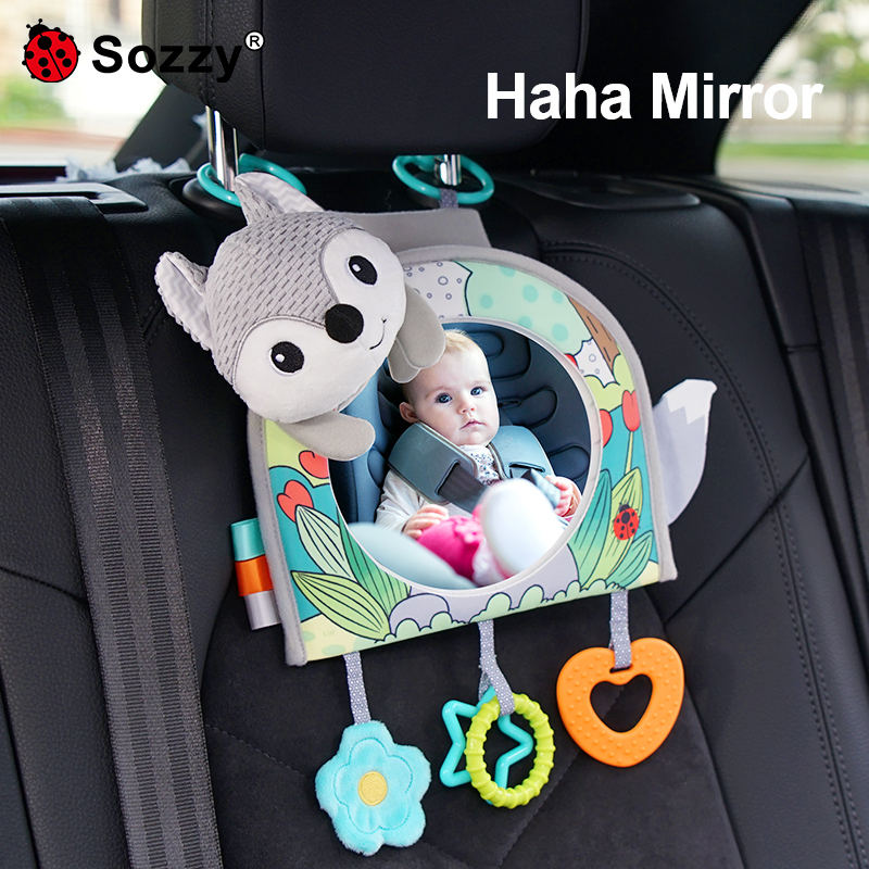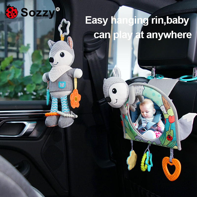 Sozzy Animal Tummy Time Mirror Traveling Baby Car Seat Stroller Hanging Toys with Mirror Teether