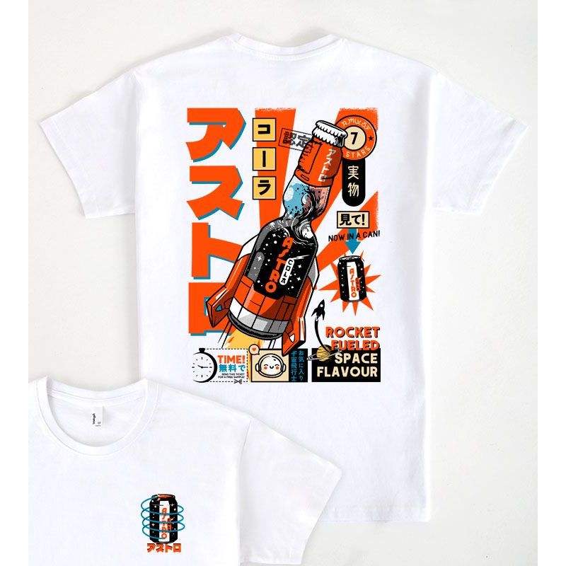 T-Shirt Space Flavour Bianca con Design a Razzo, Abbigliamento Promozionale Unisex