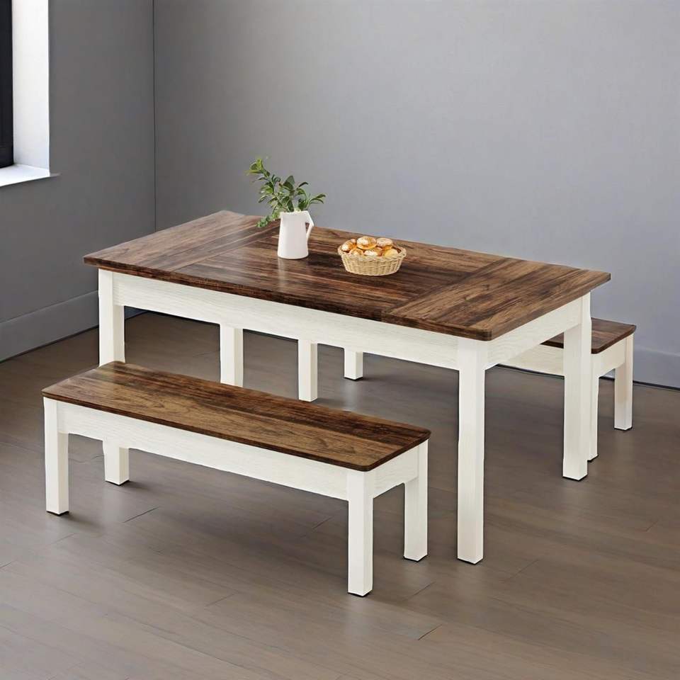 Set da Cucina Salvaspazio 3 Pezzi Stile Rustico per 4-6 Persone, Tavolo da Pranzo in Legno da 55 Pollici con 2 Panche per Sala da Pranzo