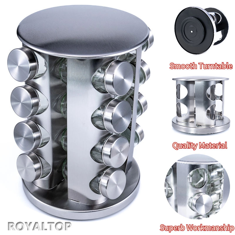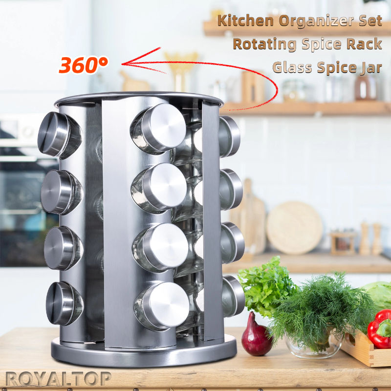 Salvaspazio da cucina porta stagionatura 16 pezzi coperchio in acciaio inox sale e pepe in vetro Shaker per spezie Set con ripiano carosello