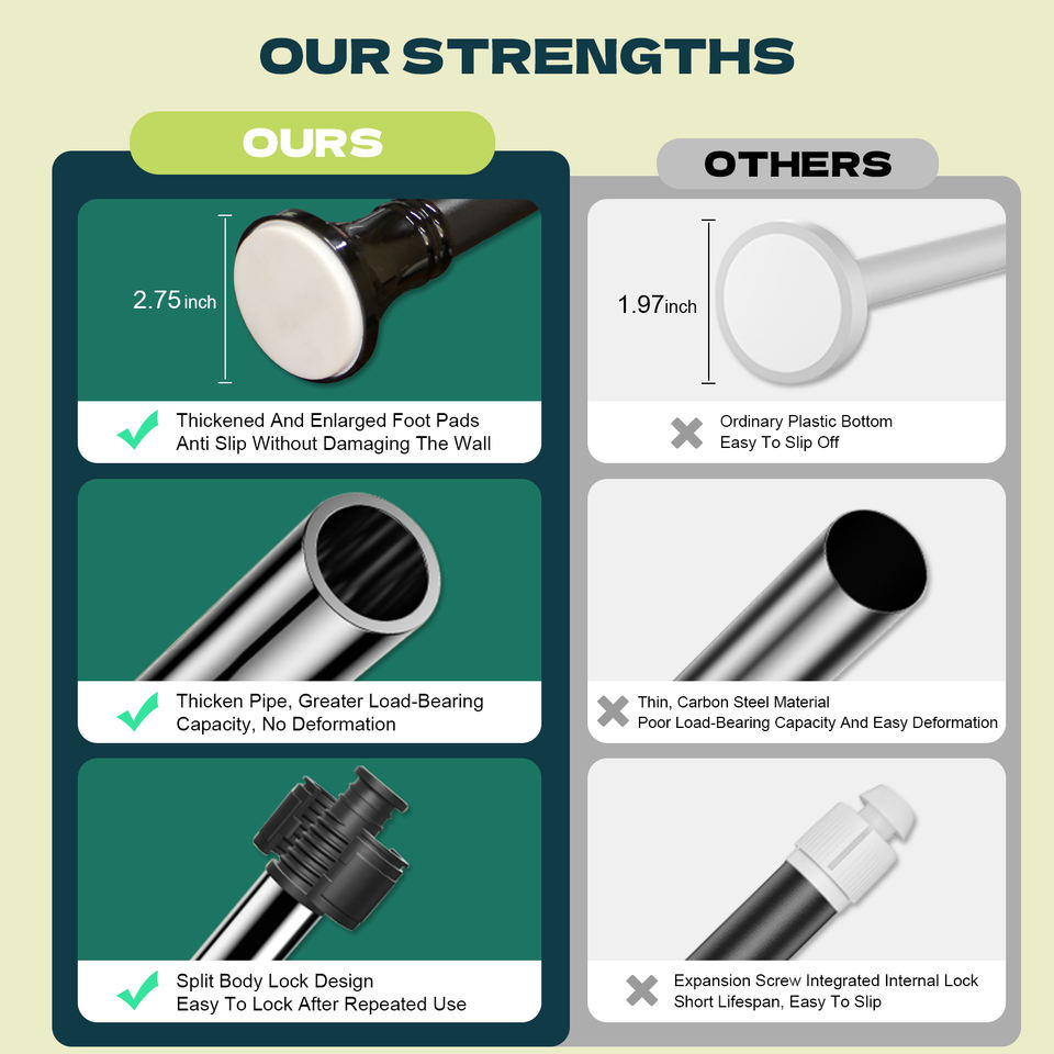 Asta telescopica a parete salvaspazio staffa estensibile in acciaio inossidabile per tende/piante/scaffali senza installazione di strumenti