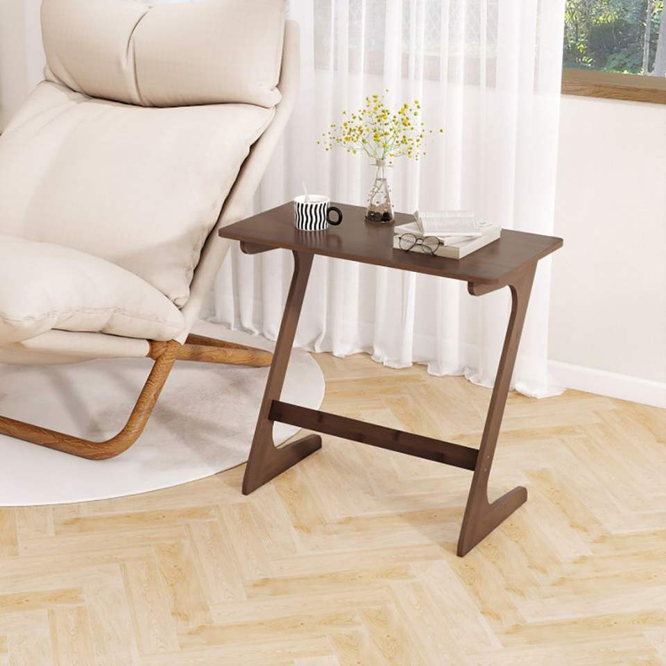 Tavolino Laterale a Forma di Z in Bambù, Spazioso con Piano Salvaspazio per Arredamento Soggiorno