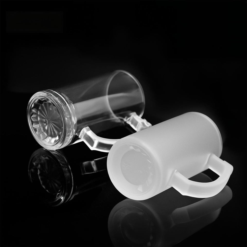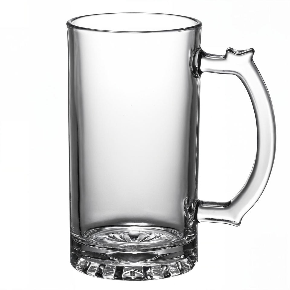Bicchieri da birra in vetro da 16oz disponibili in Spagna, pronti per la stampa personalizzata a trasferimento termico di loghi e motivi con materiale di alta qualità.