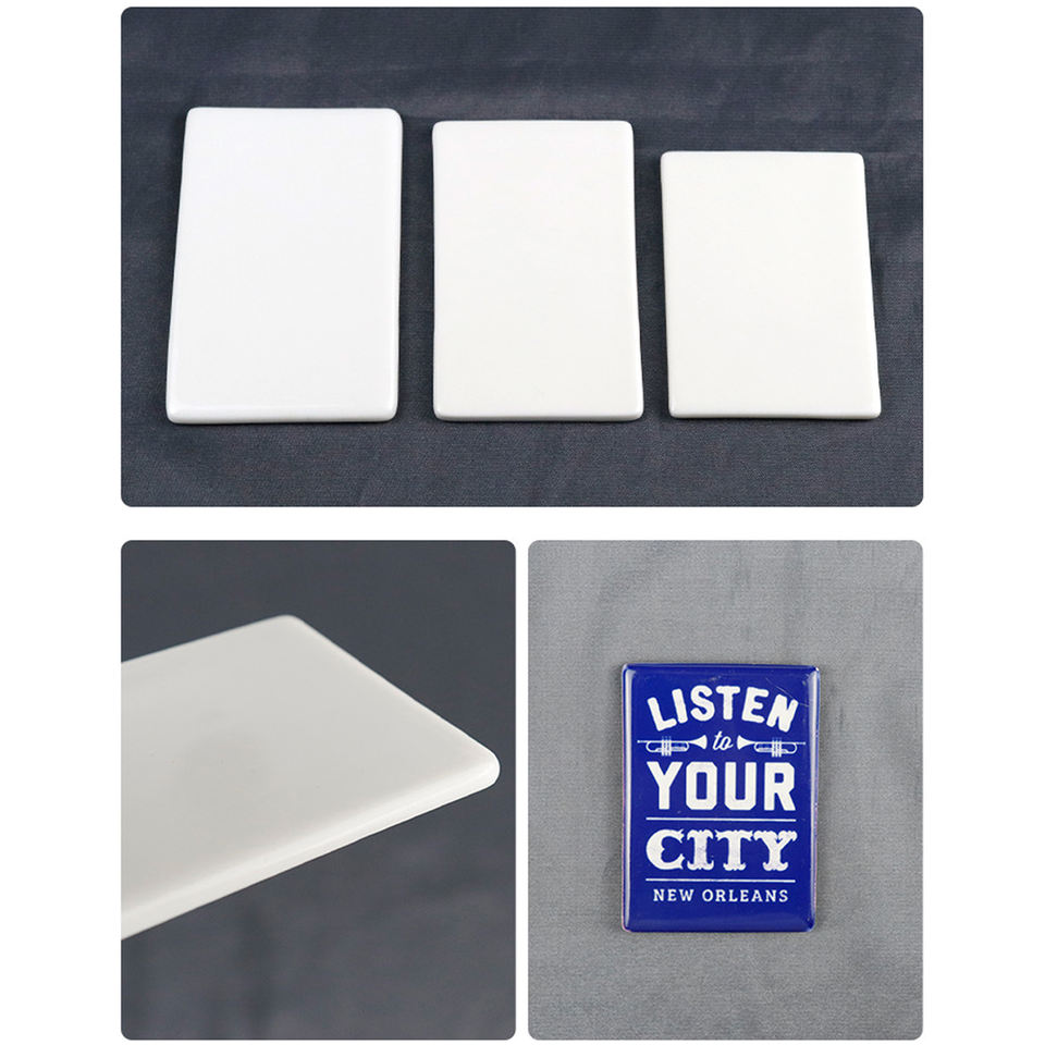 Magnete da frigo in ceramica non rivestita, disponibile in Spagna, pronto per la applicazione del tuo design personalizzato tramite trasferimento a caldo.