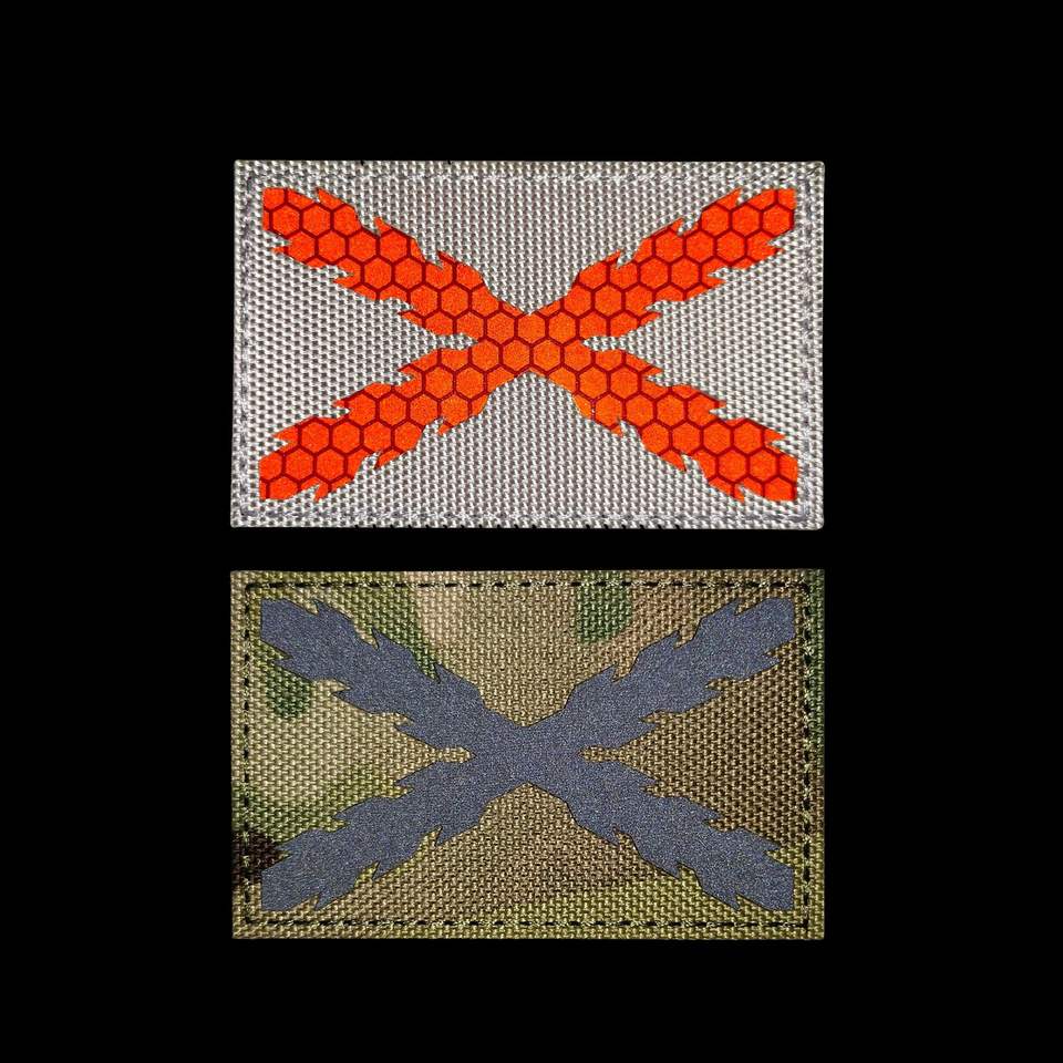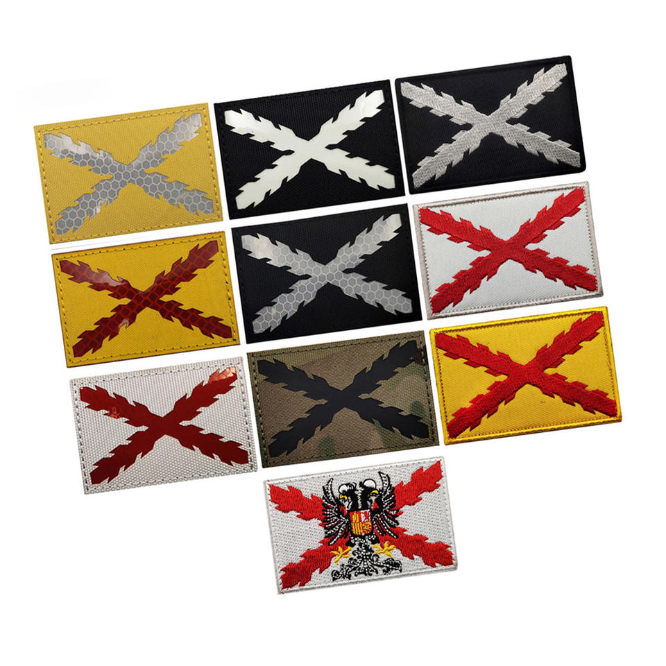 Spain Reflective and Luminous Burgundian Cross Flag Tactical Patches with Hook Loop Fastener on the Back